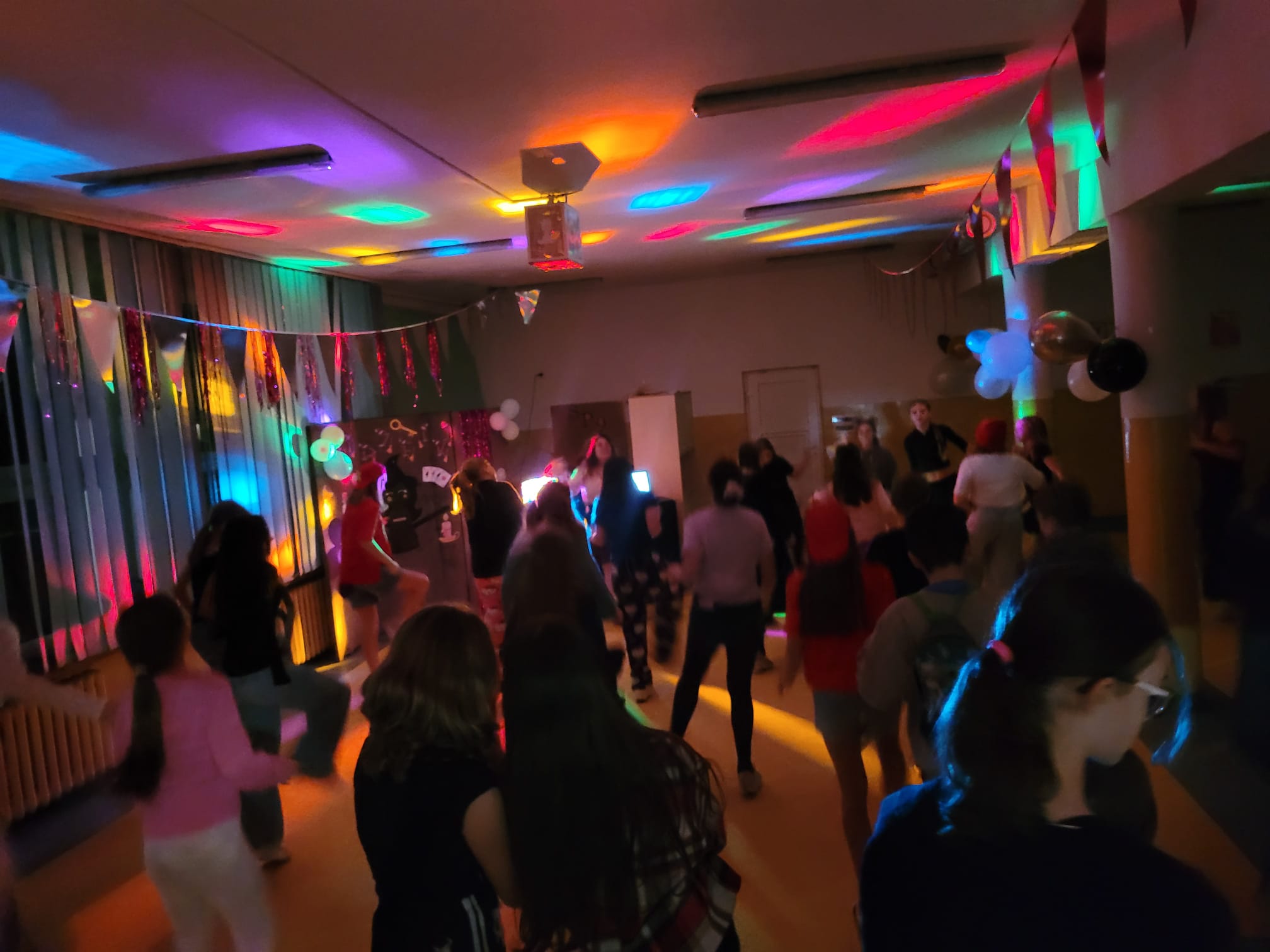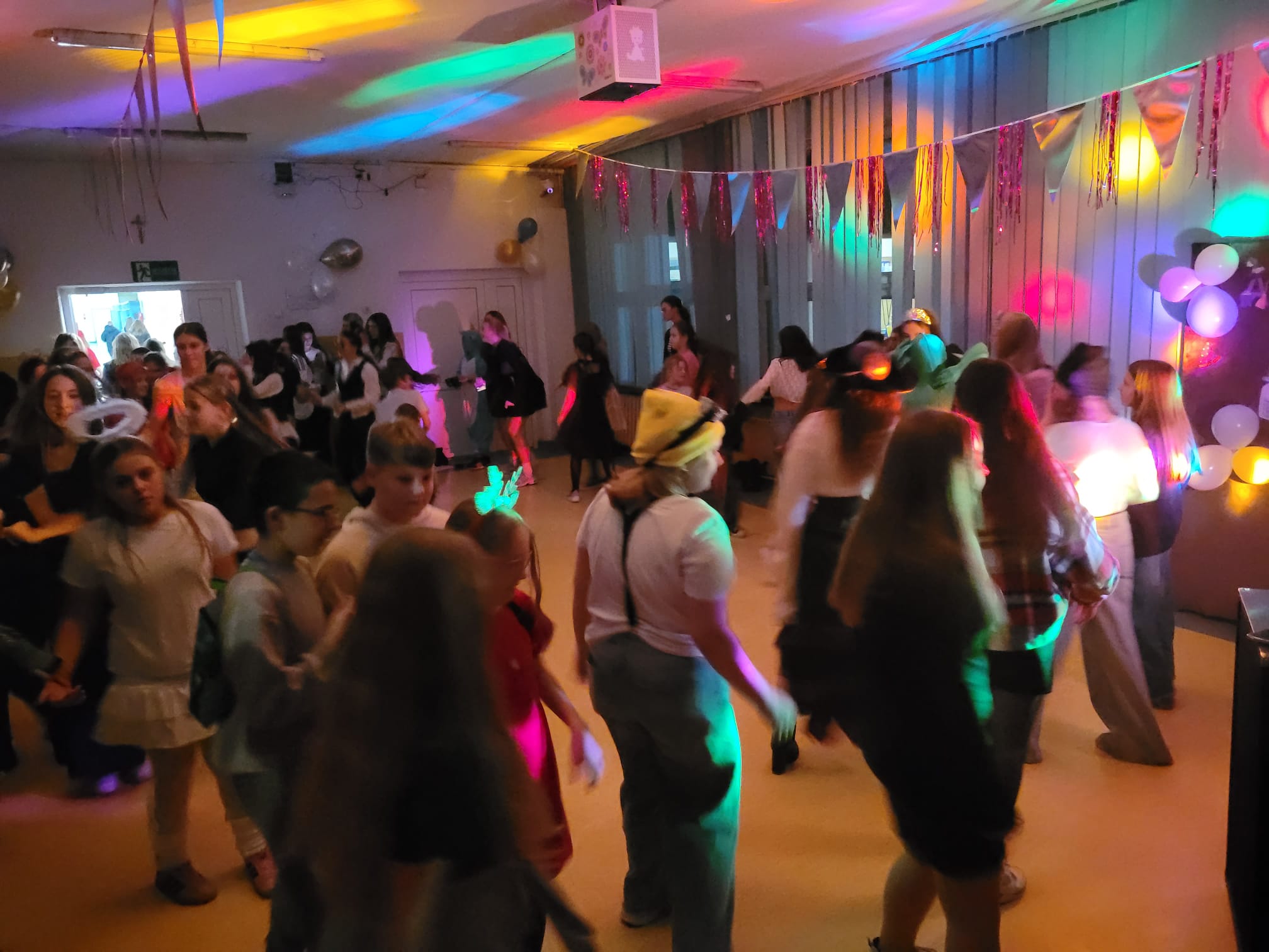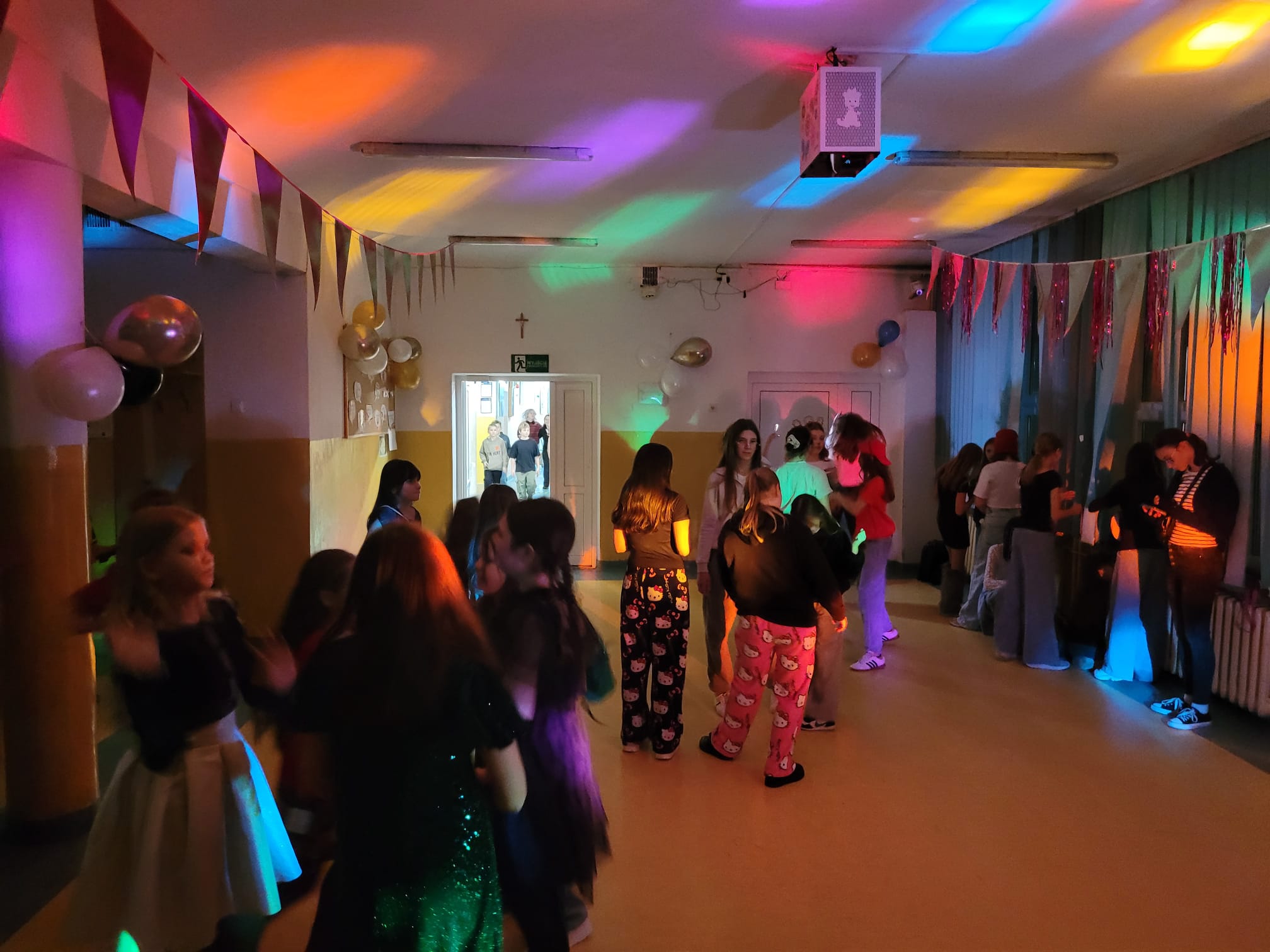 Zabawa była naprawdę udana – pełna śmiechu, muzyki i rozmów. To był wieczór, który z pewnością na długo pozostanie w pamięci naszej szkolnej społeczności. Dziękujemy uczniom za wspaniałą, kulturalną zabawę oraz wszystkim tym, którzy przyczynili się do stworzenia tego wyjątkowego wydarzenia!