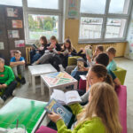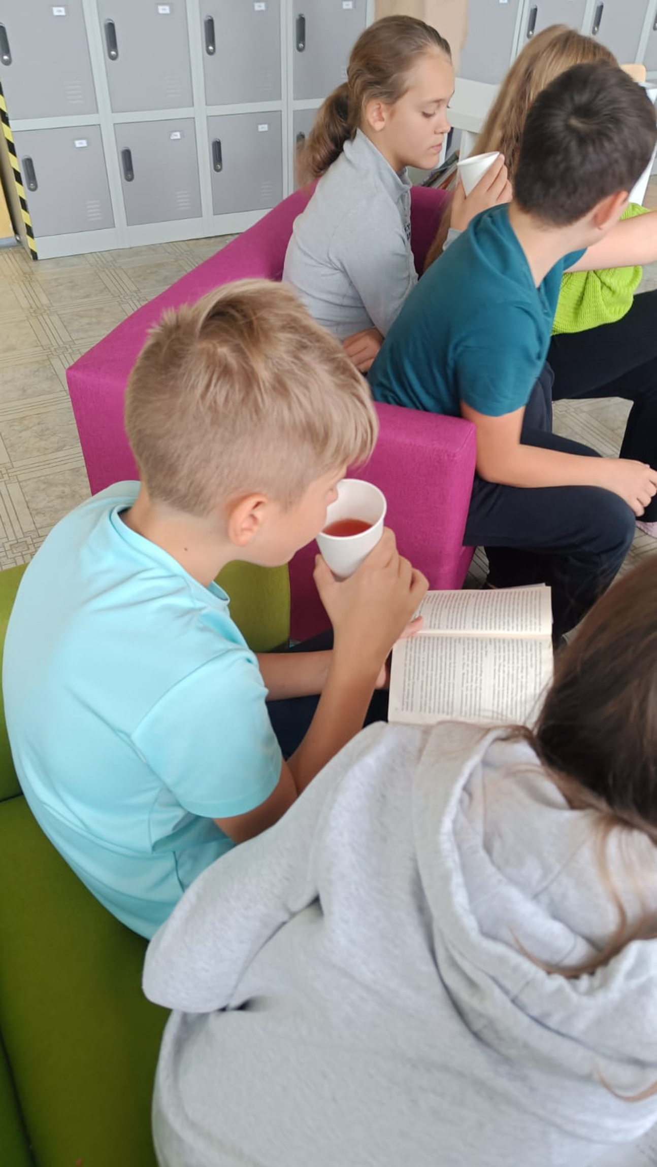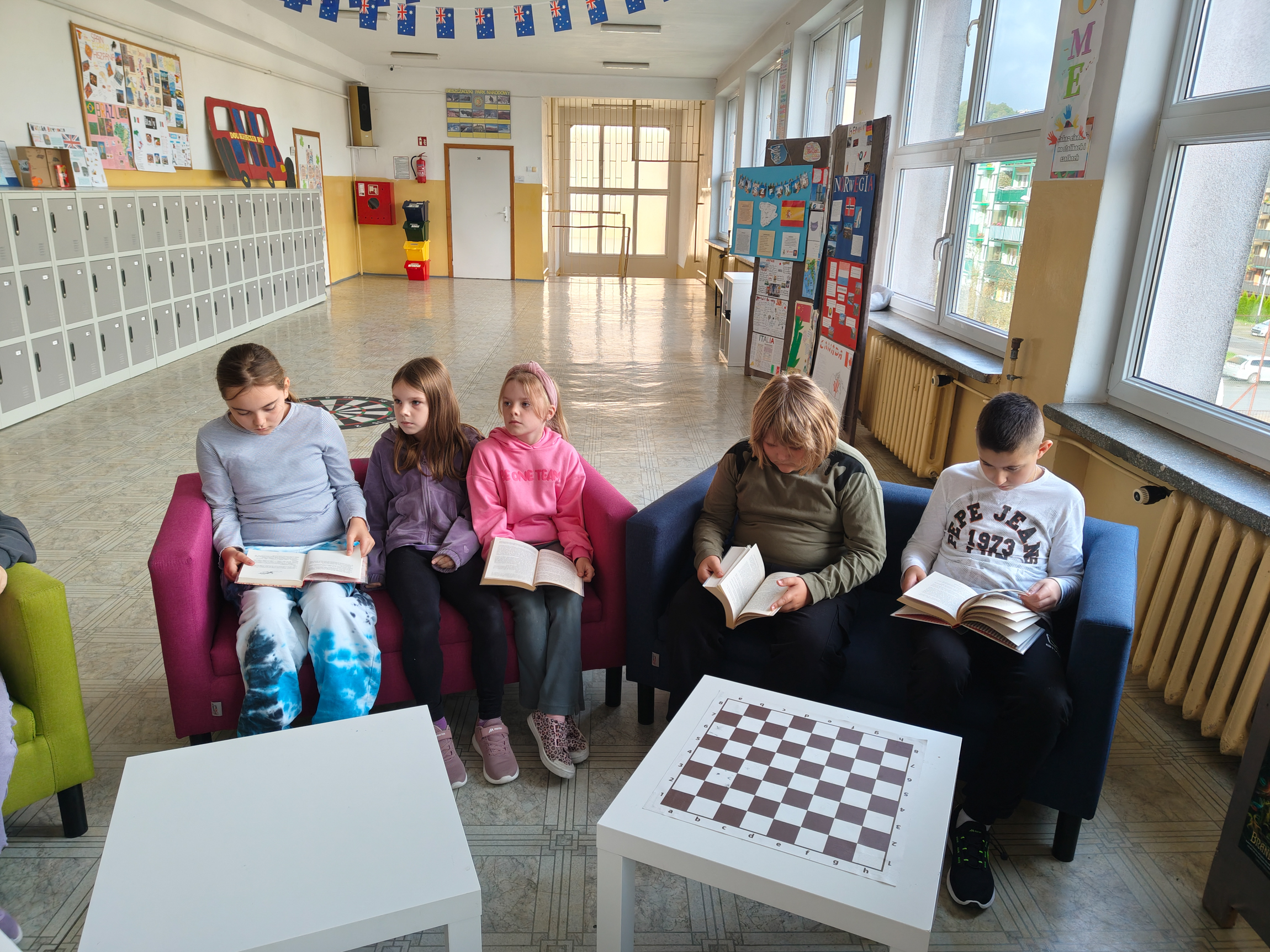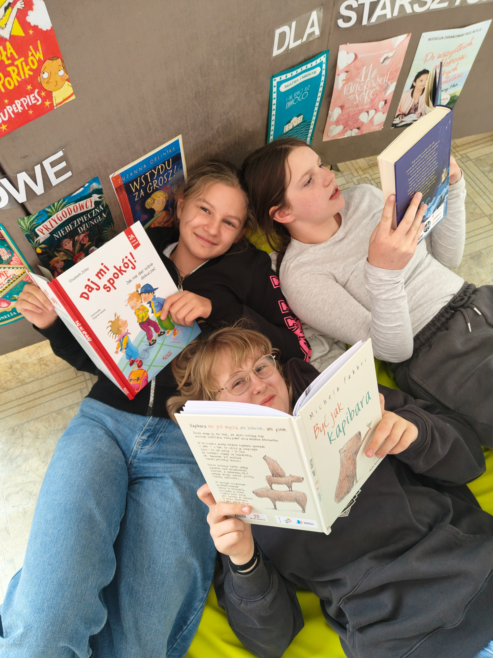 W tym roku przygotowaliśmy wiele różnorodnych aktywności. Uczniowie mogli odwiedzać „Zaczytaną Kawiarenkę”, w której z okazji Ogólnopolskiego Dnia Głośnego Czytania podczas lekcji polskiego słuchali fragmentów książek. W przestrzeni szkoły pojawiła się także gazetka promocyjna „KSIĄŻKOFLIX”, prezentująca nowości zakupione w ramach Narodowego Programu Rozwoju Czytelnictwa, która przyciągała spojrzenia i zachęcała do wypożyczania książek.