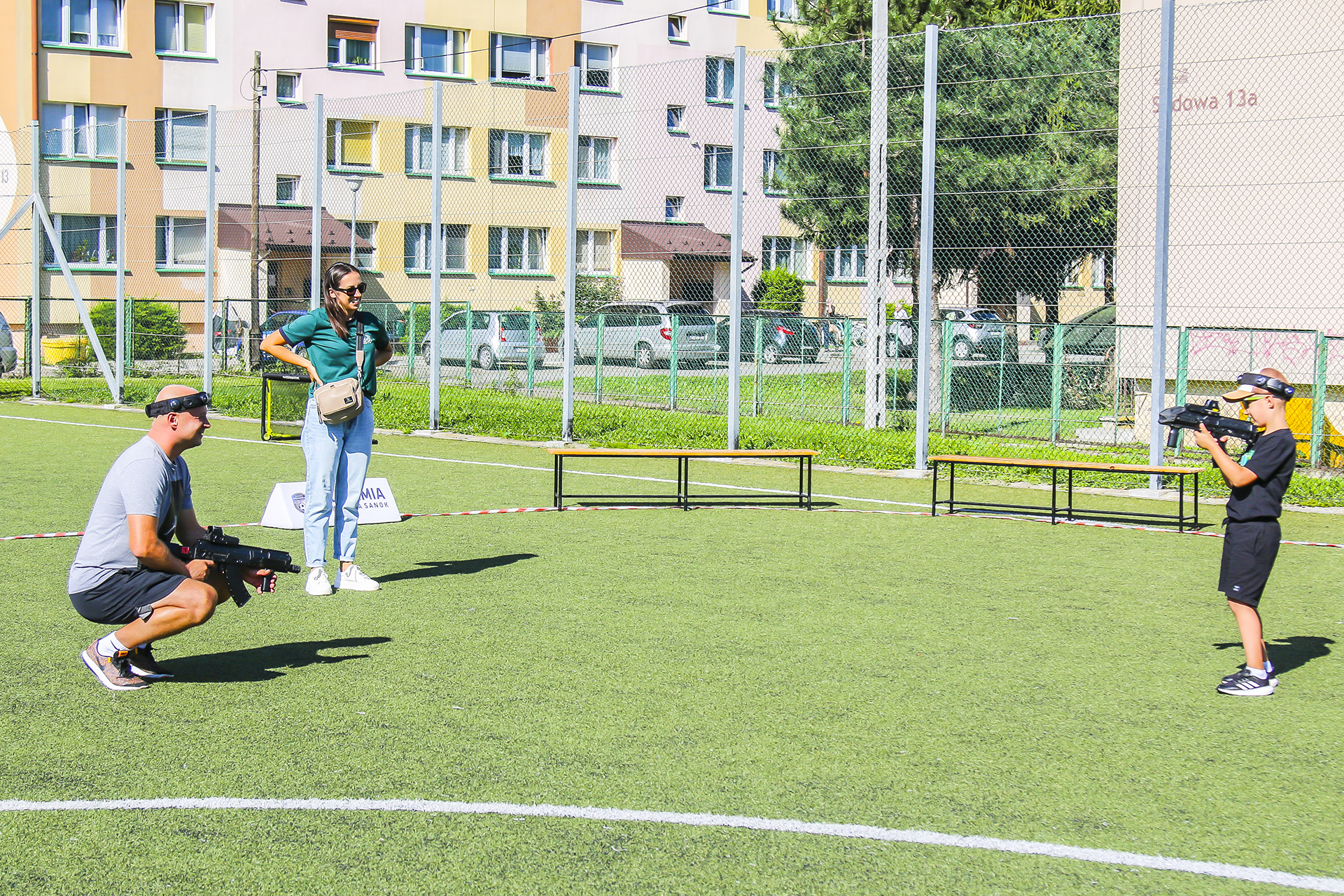 Gościliśmy też u siebie przedstawicieli TOR RC Steruj Sam. Dzieci miały okazję spróbować swoich sił w sterowaniu autami i pokonywaniu przeszkód, co tylko pozornie wydaje się łatwe. Wyjątkową atrakcją i popularnością i to nie tylko wśród młodszych ale i starszych cieszyło się stanowisko Laser Force. Zabawa był przednia i wyjątkowa.