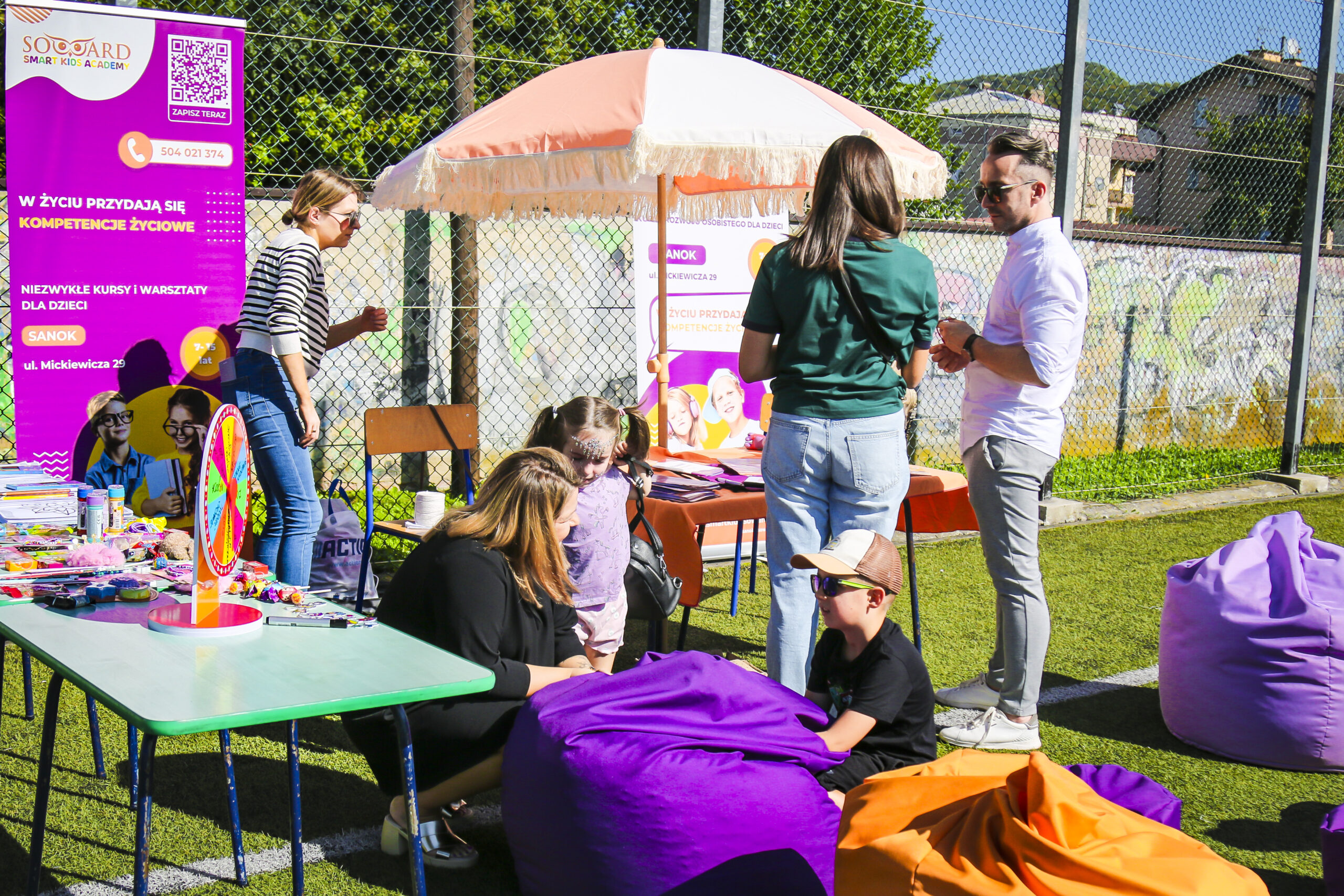 Przez cały czas trwania pikniku można było odwiedzać Pchli Targ – z grami, puzzlami i innymi zabawkami, stoiska edukacyjne – prowadzone zarówno przez nauczycieli, jak i zaproszonych gości – Soward Smart Kids Sanok.