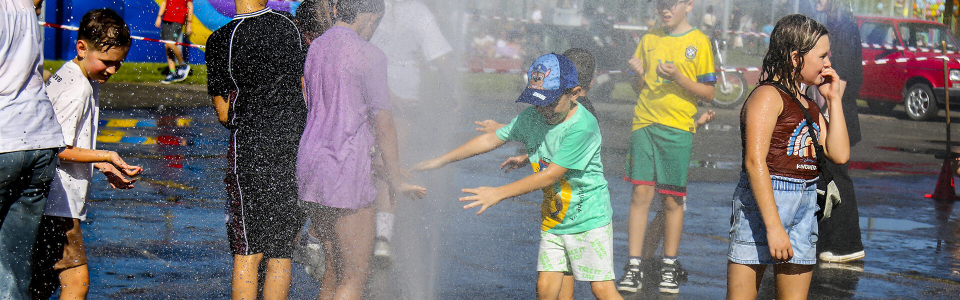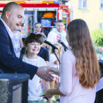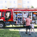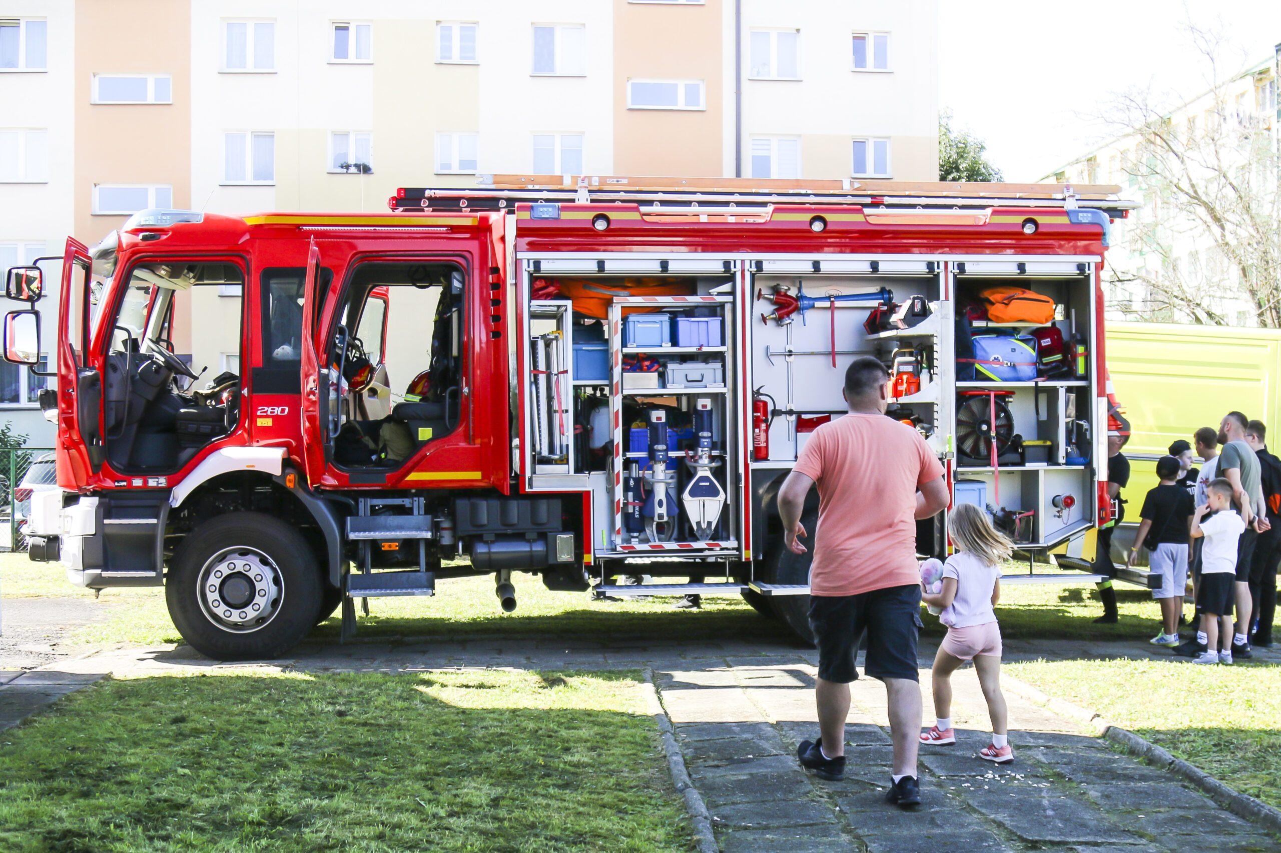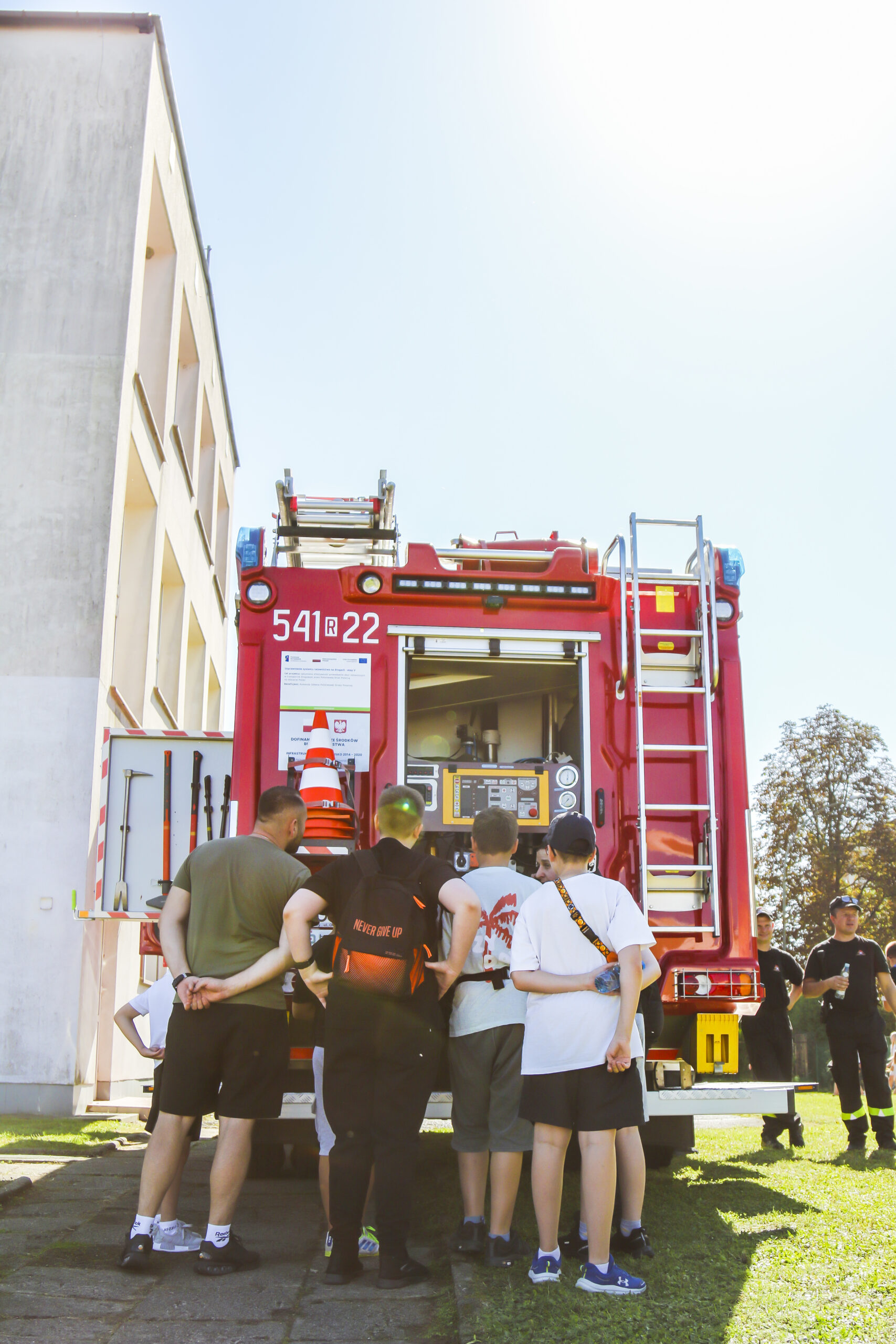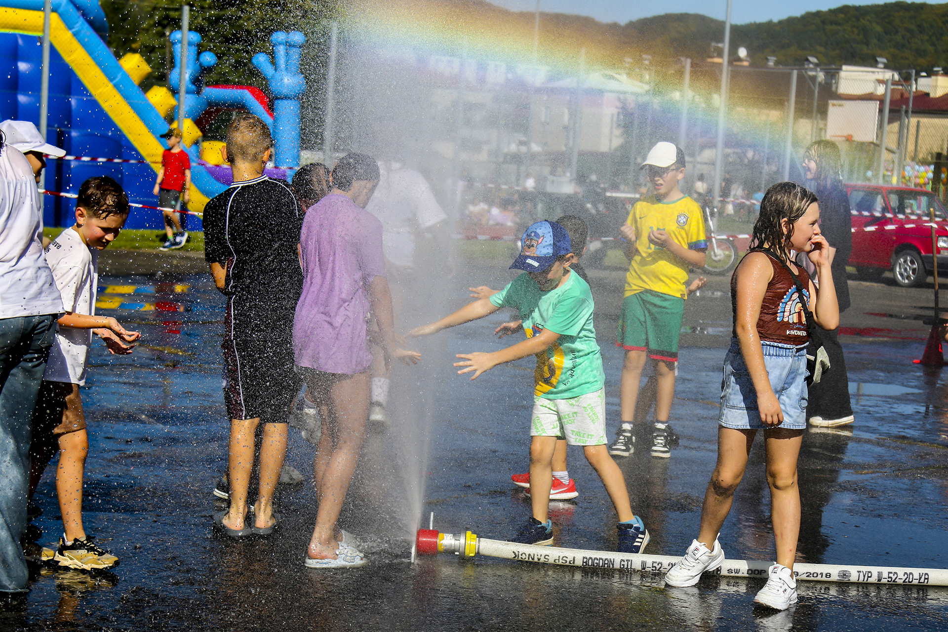 Uczestnicy mogli pooglądać wóz Straży Pożarnej. Szczególnie dużo radości sprawiła im wodna fontanna, w której mogli się pochlapać.