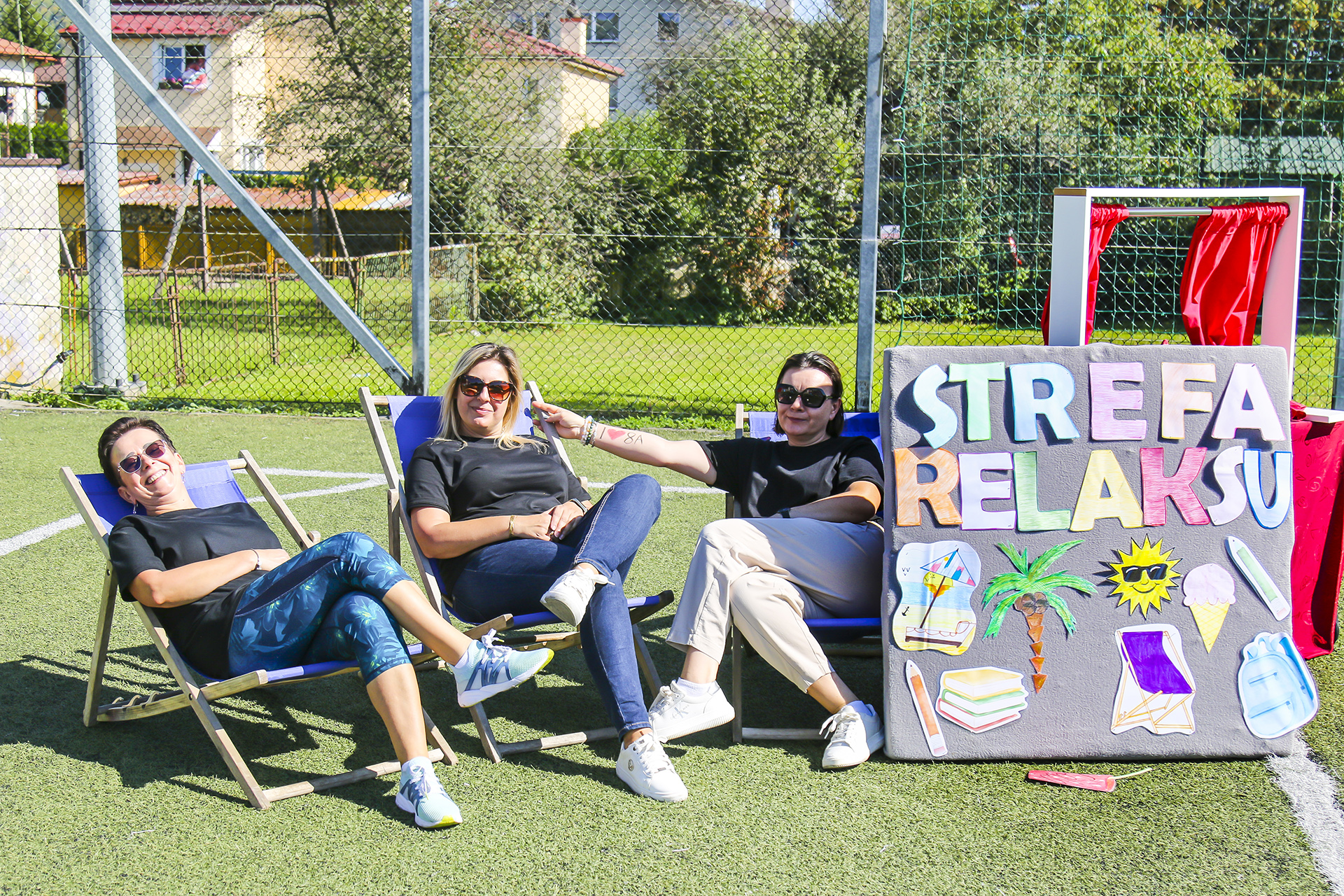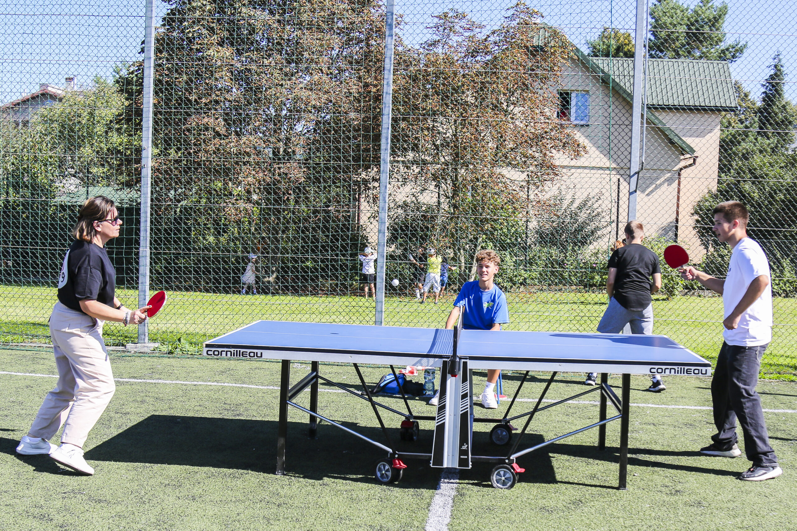 Nie można też zapomnieć o mini treningu piłki nożnej, który został zorganizowany dzięki prezesowi Akademii Piłkarskiej Sanok Jakubowi Gruszeckiemu i udostępnionemu przez niego sprzętowi. Rozgrywkach tenisa stołowego, czy rozgrywkach w szachach plenerowych, a przede wszystkim – meczu uczniowie vs. rodzice i nauczyciele, który rozpoczął się o 14:00. Na murawie działo się! Mecz wygrali oczywiście…… uczniowie.