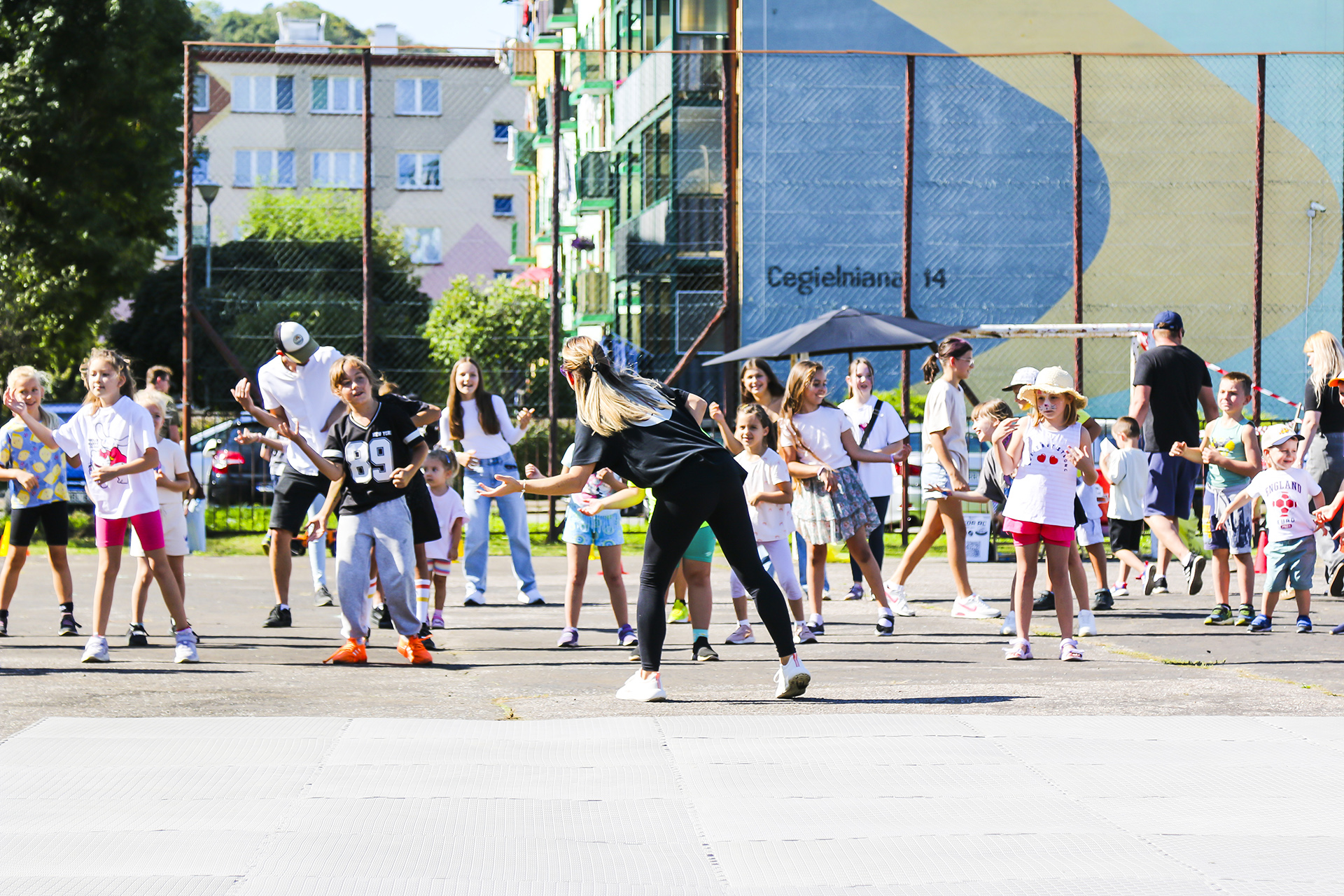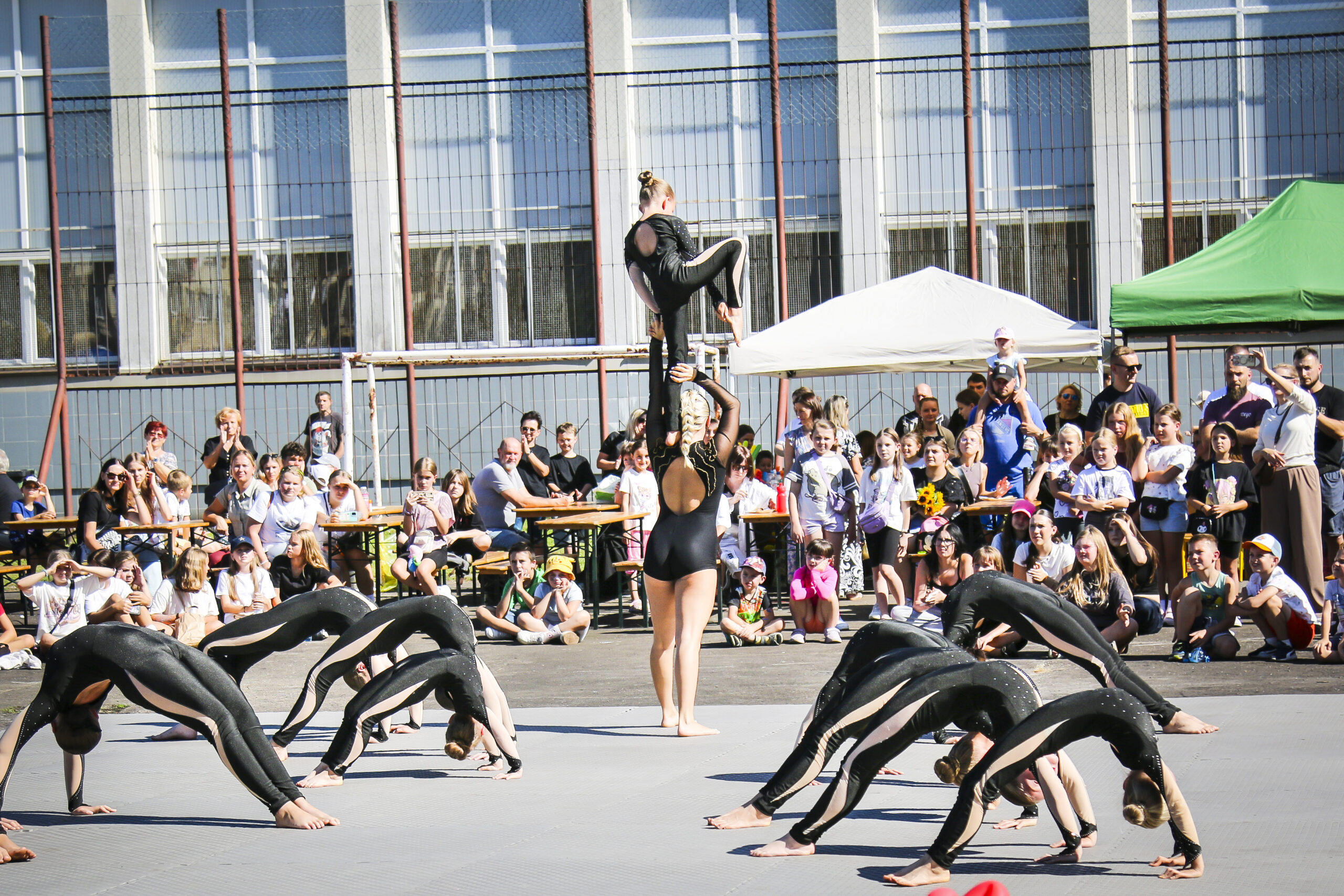 Tuż po nich, o godzinie 13.00, wystąpiła nasza absolwentka – Konstancja Iwańczyk wraz ze swoimi uczennicami i zaprezentowały przepiękny układ gimnastyczny. Jej talent i obecność były prawdziwą dumą dla całej społeczności szkolnej. W programie znalazły się także występy taneczne dziewcząt pracujących pod okiem p. Pawła Kuligi w MDK-u.