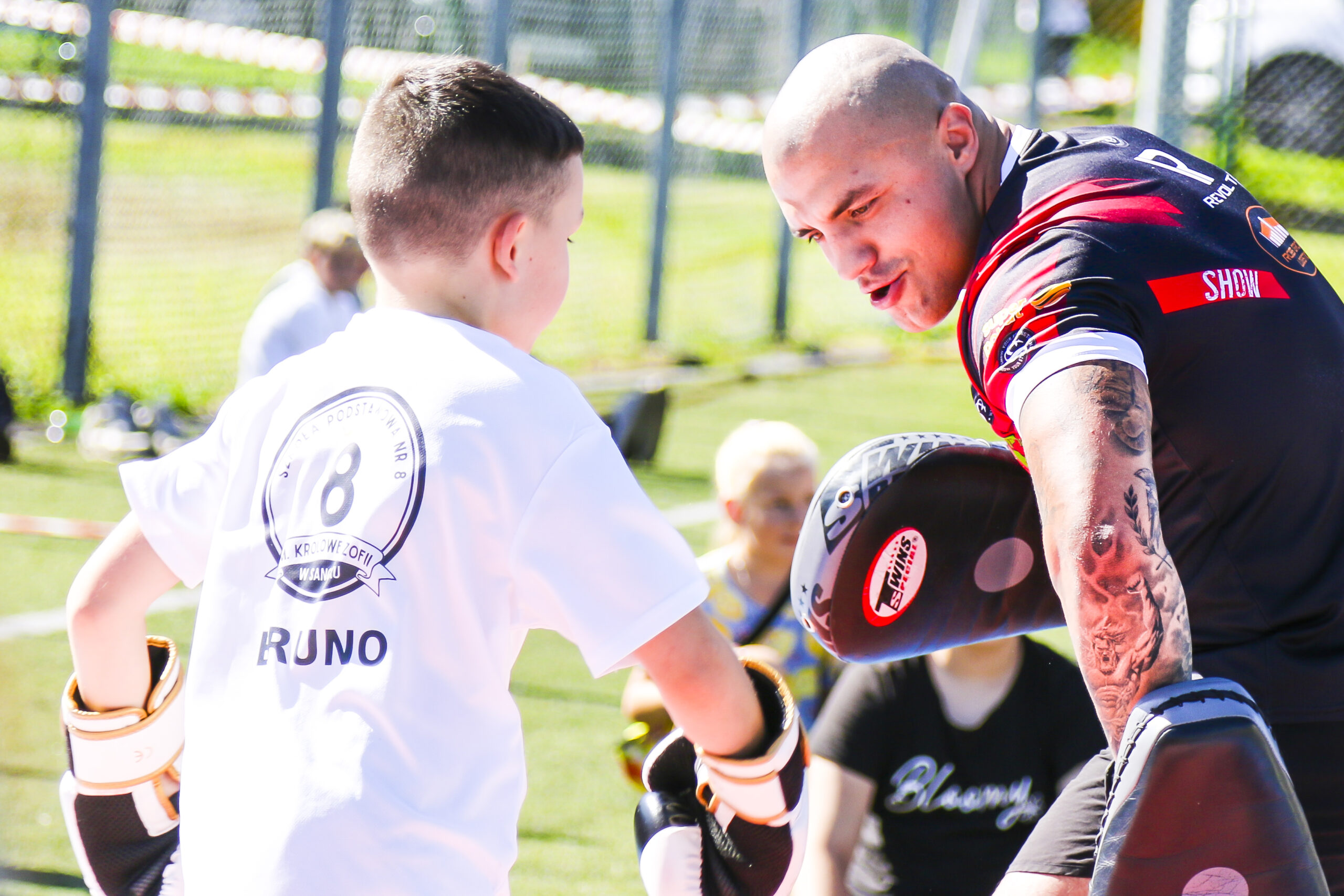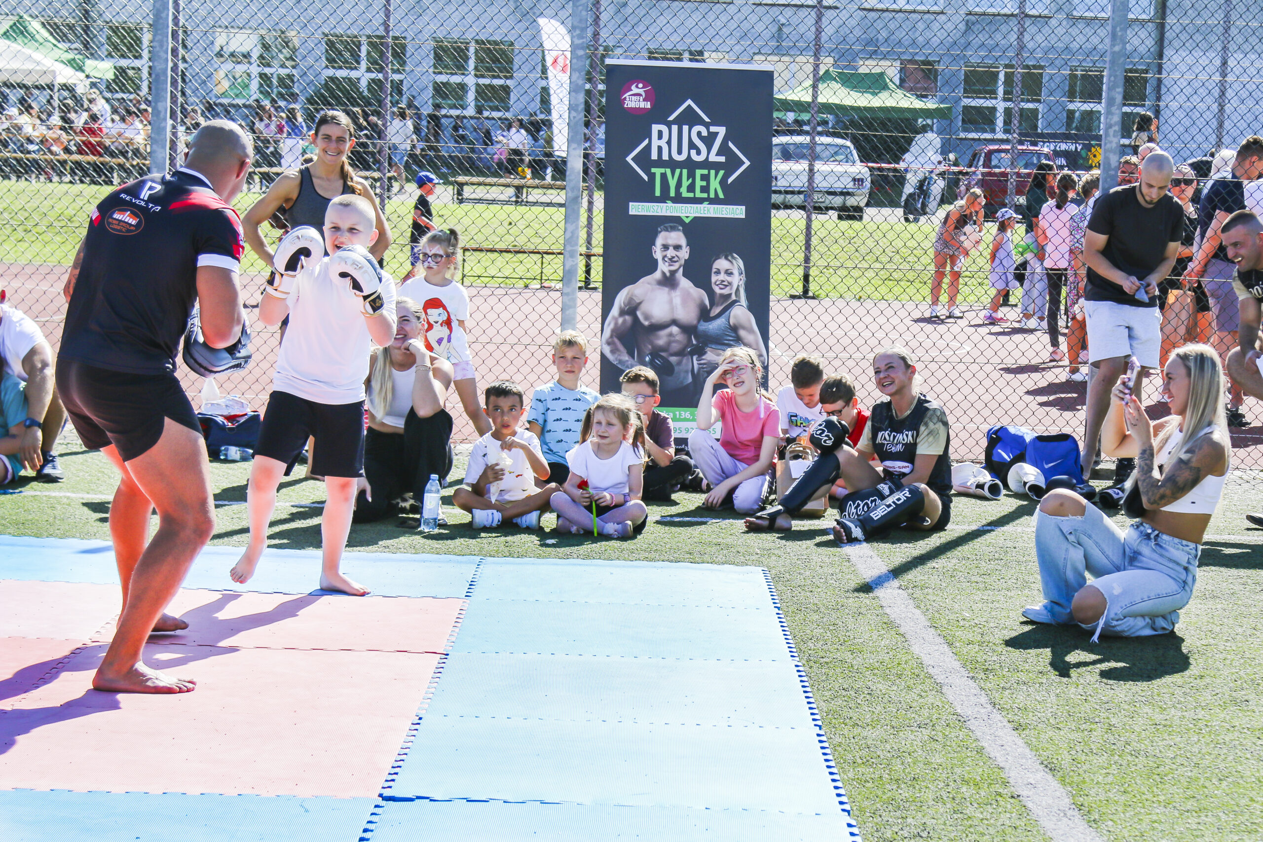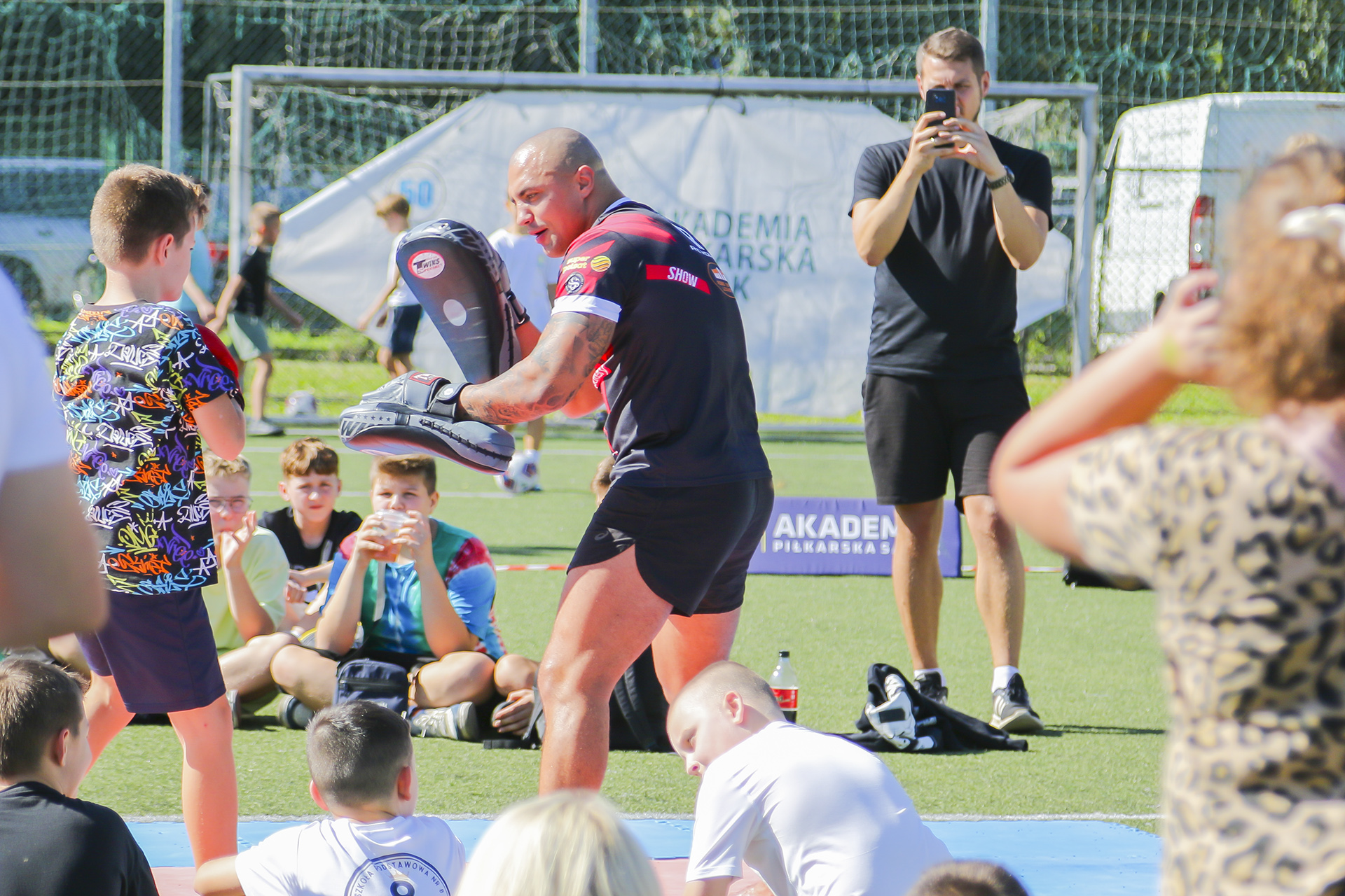 O godzinie 12.00 w małej sali gimnastycznej odbyło się spotkanie z mistrzem kickboxingu, Kamilem Rościńskim, który podzielił się swoją sportową historią, motywacją oraz zdradził kilka tajników walki i wytrwałości. Następnie, na Orliku, przeprowadził trening otwarty, który cieszył się ogromnym zainteresowaniem – zarówno młodszych, jak i starszych uczestników i obserwatorów.
