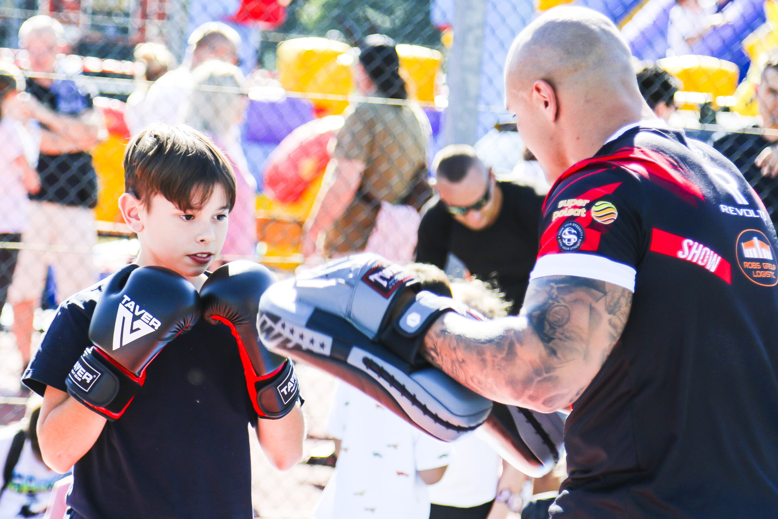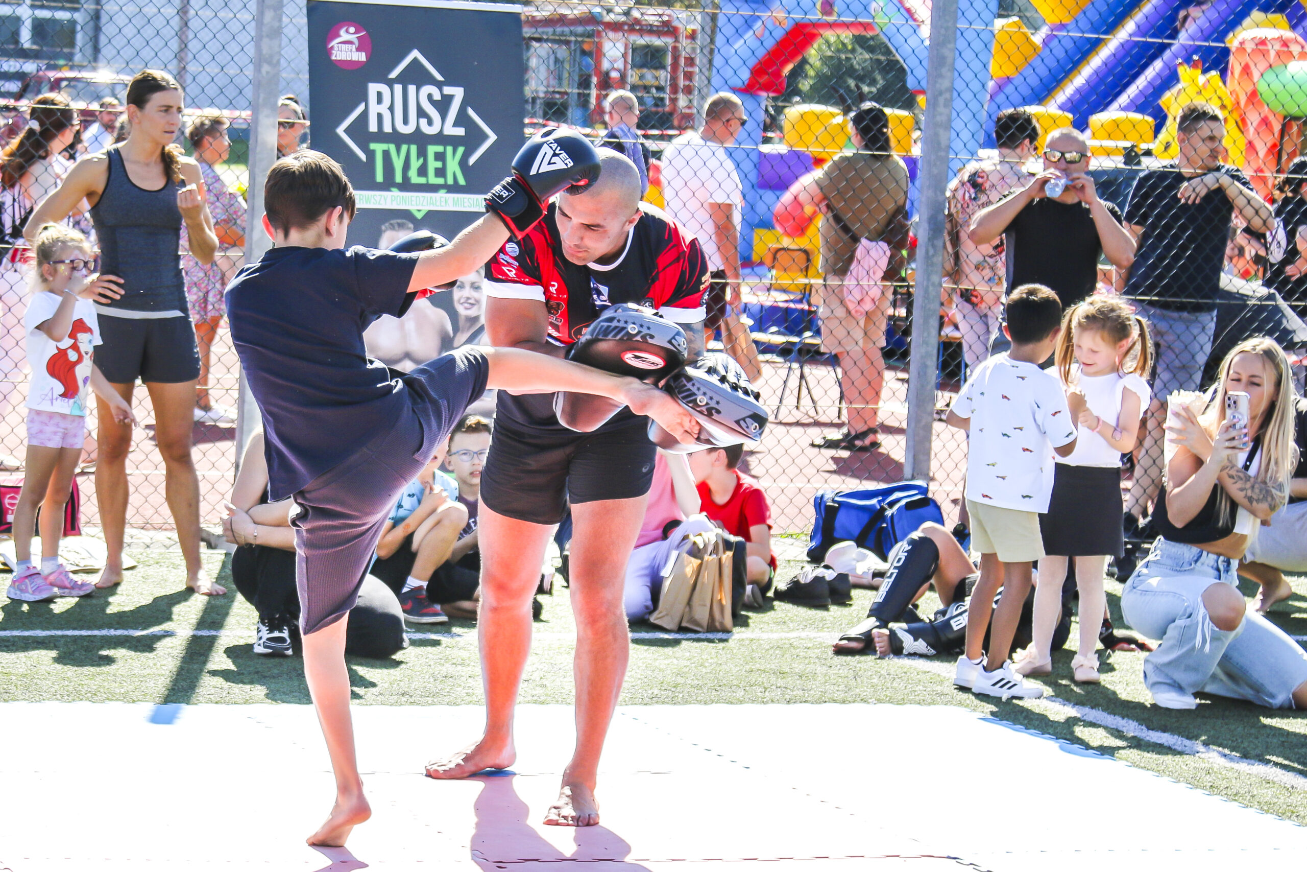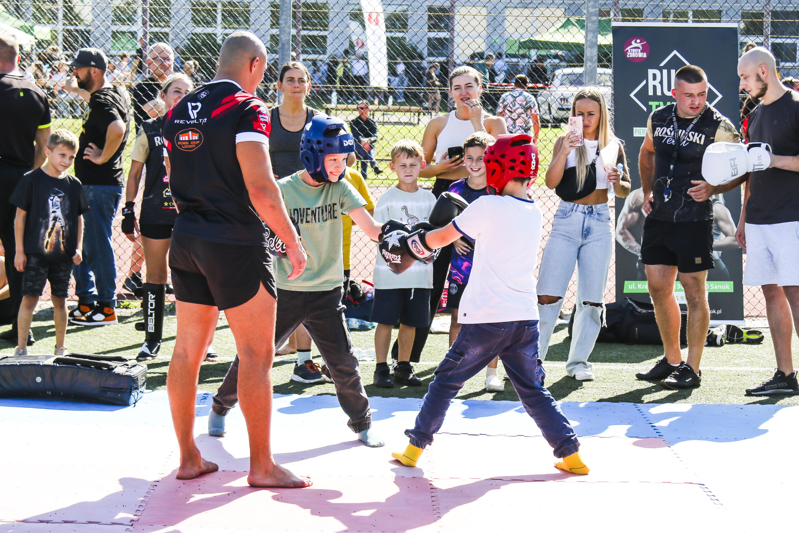O godzinie 12.00 w małej sali gimnastycznej odbyło się spotkanie z mistrzem kickboxingu, Kamilem Rościńskim, który podzielił się swoją sportową historią, motywacją oraz zdradził kilka tajników walki i wytrwałości. Następnie, na Orliku, przeprowadził trening otwarty, który cieszył się ogromnym zainteresowaniem – zarówno młodszych, jak i starszych uczestników i obserwatorów.