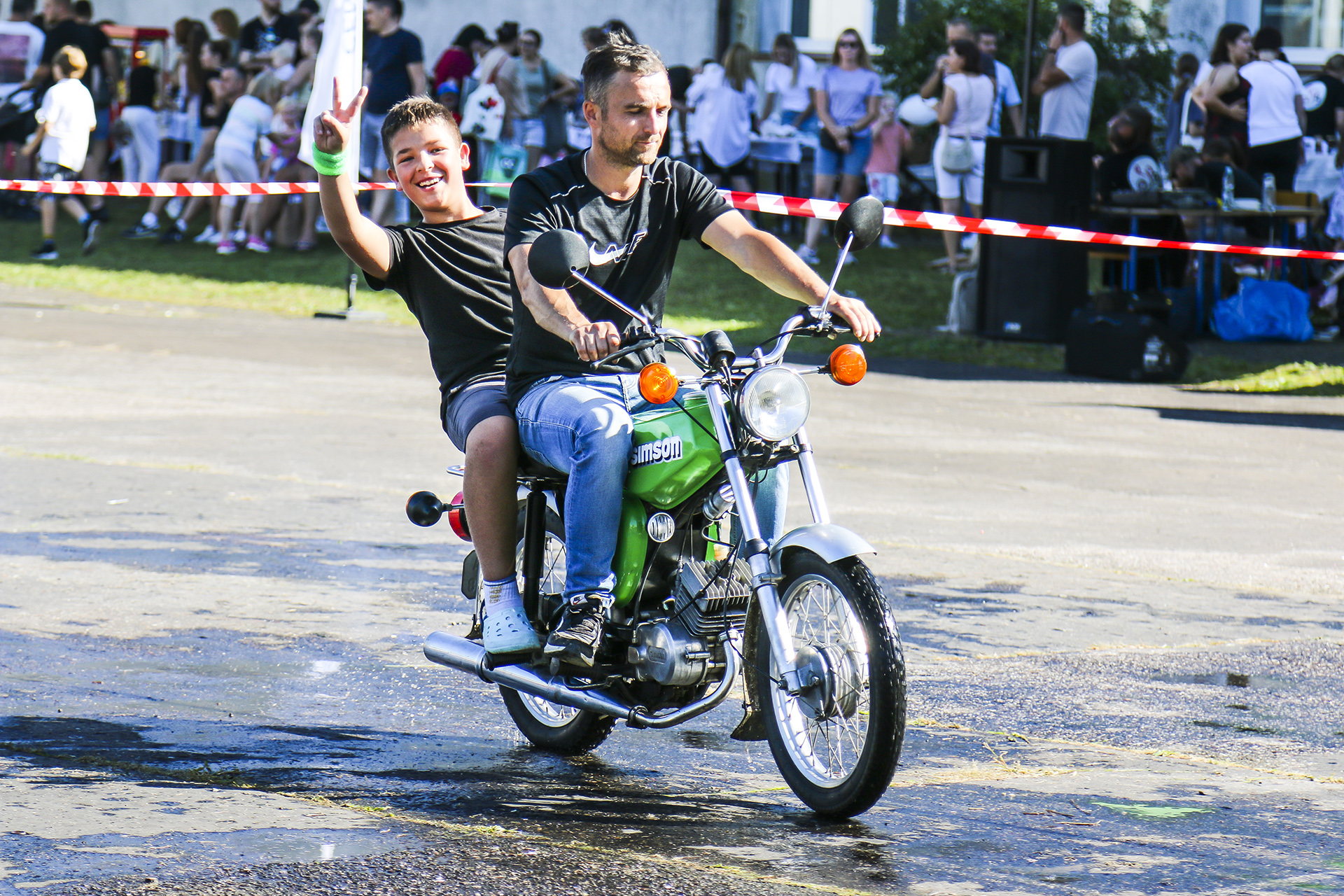 Ponownie mogliśmy pooglądać stare, zabytkowe auta, przejechać się na starym motocyklu czy quadem, co wzbudzało w dzieciach wyjątkowo dużo entuzjazmu, o czym może zaświadczyć licznik na kładzie – 40 km (oczywiście pod opieką profesjonalistów: p. Łukasza Górala i p. Łukasza Furniadysa).