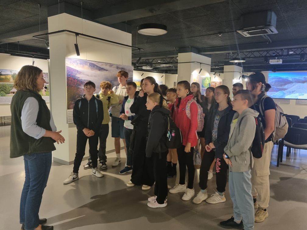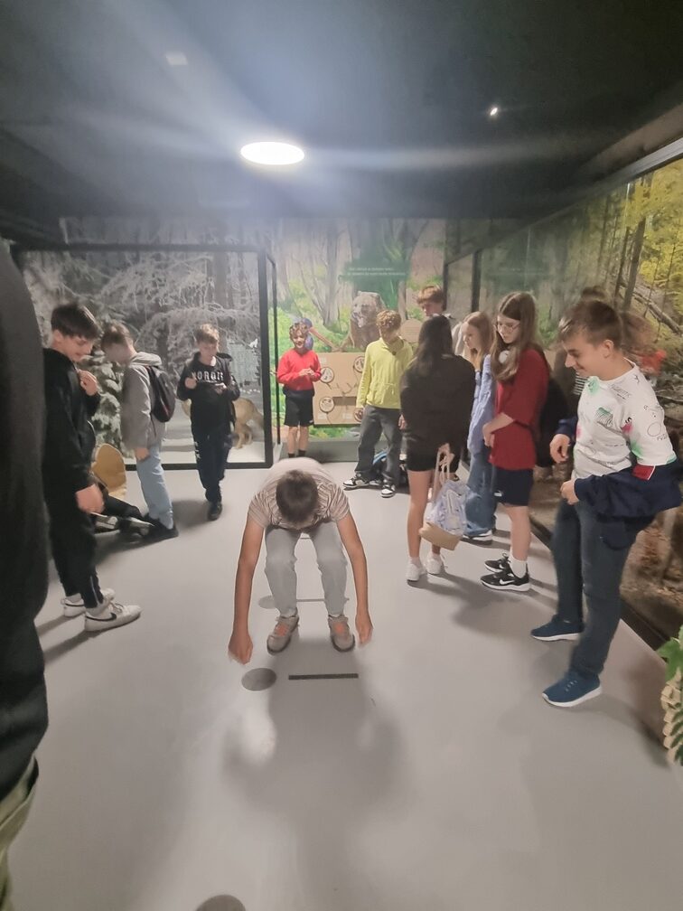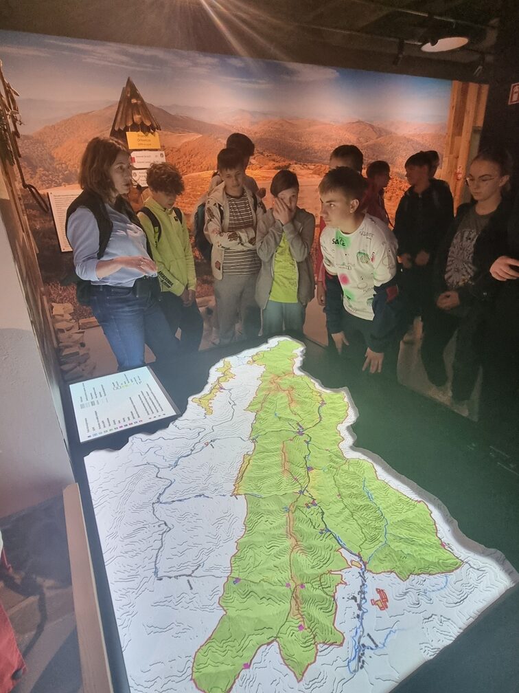 Po dotarciu na miejsce zaczęliśmy od lekcji muzealnej w Muzeum Przyrodniczym, które dwa lata temu przeszło gruntowny remont. Na trzech piętrach umieszczono liczne i bogate ekspozycje. Obejmują one nie tylko okazy i informacje o faunie i florze, ale także zagadnienia z paleontologii, geologii, historii, oraz współczesności regionu. Mnóstwo bieszczadzkich sekretów mogliśmy odkryć podczas tej niezwykłej lekcji przyrody, a naszą szczególną uwagę przykuły ogromne niedźwiedzie, groźnie wyglądający żbik, wilki, borsuki, żmija zygzakowata i wiele, wiele innych zwierząt.