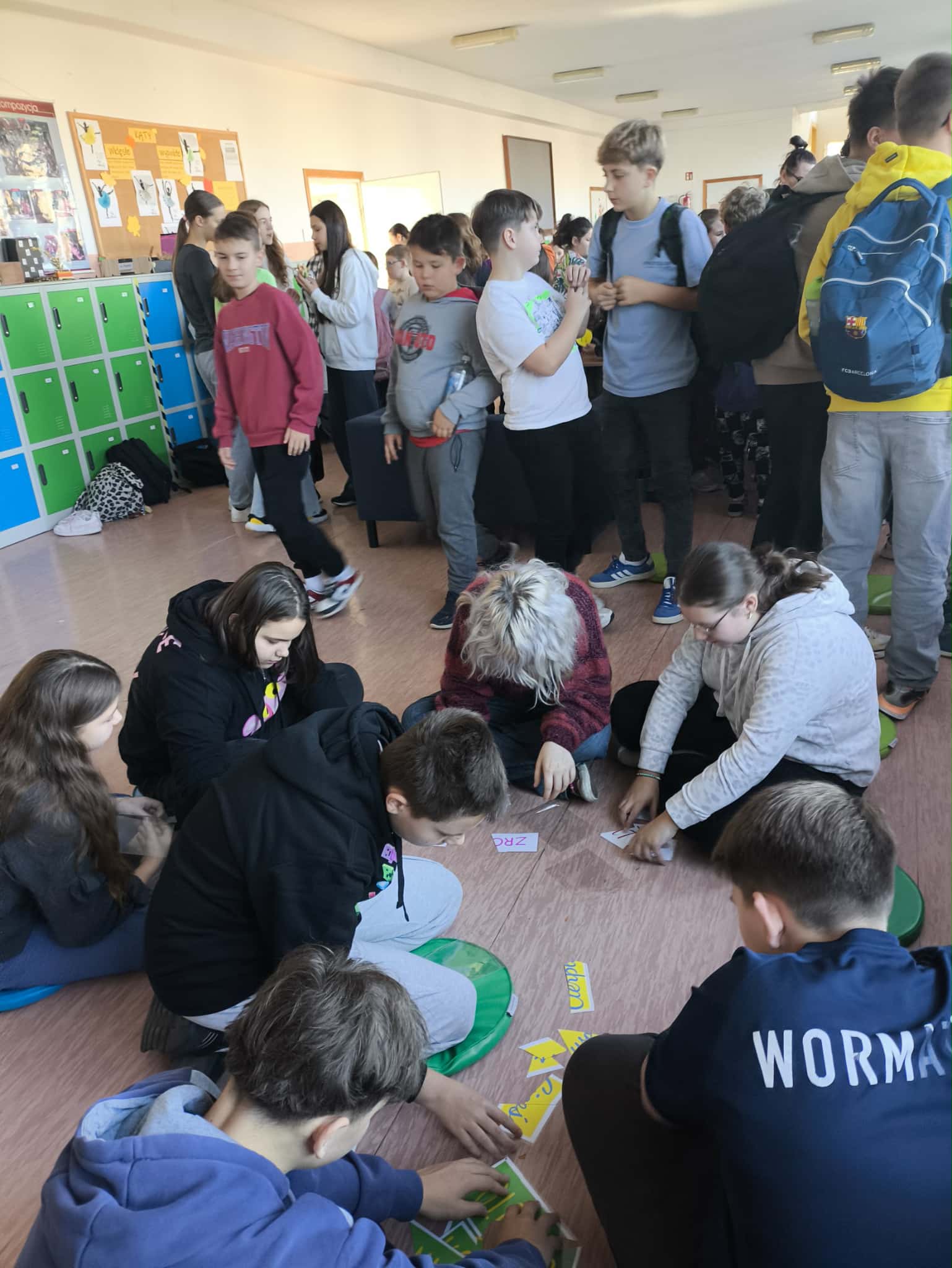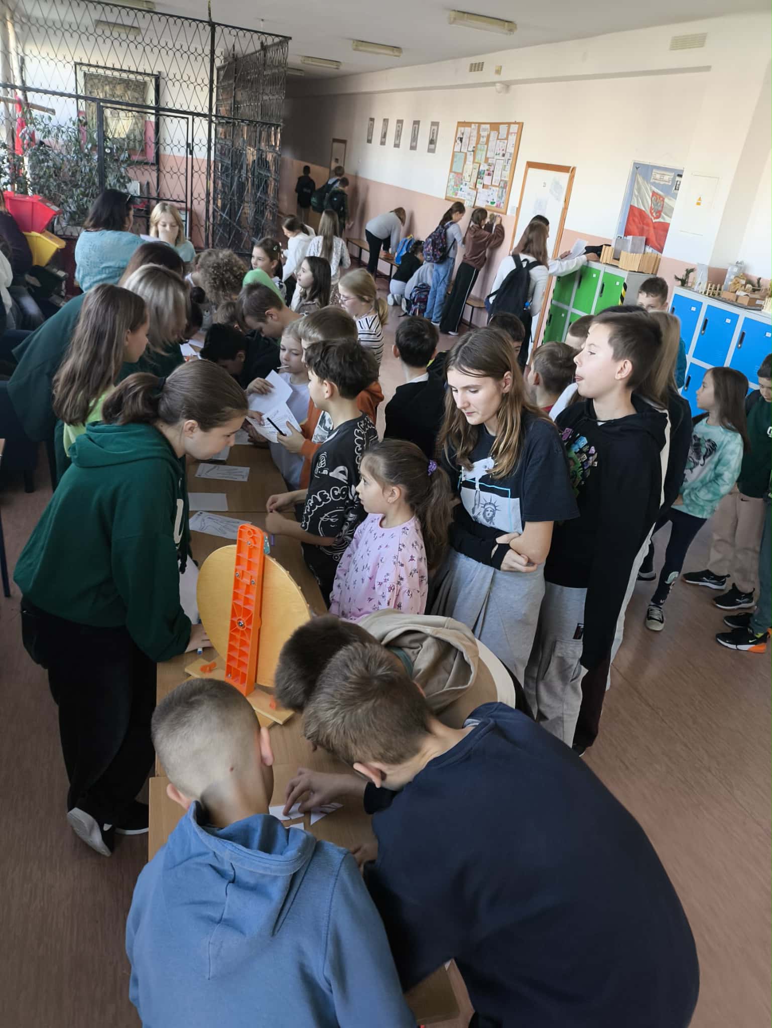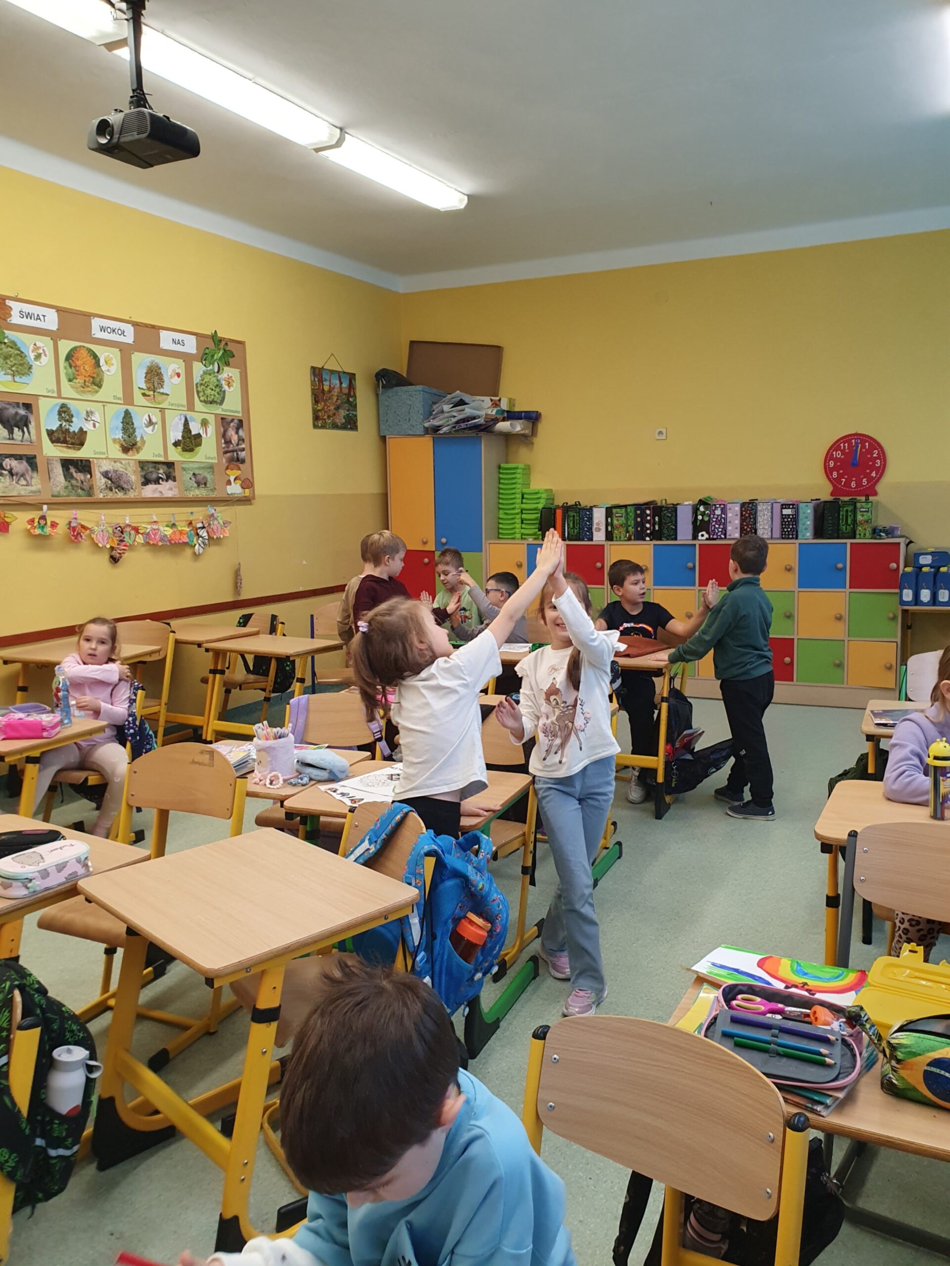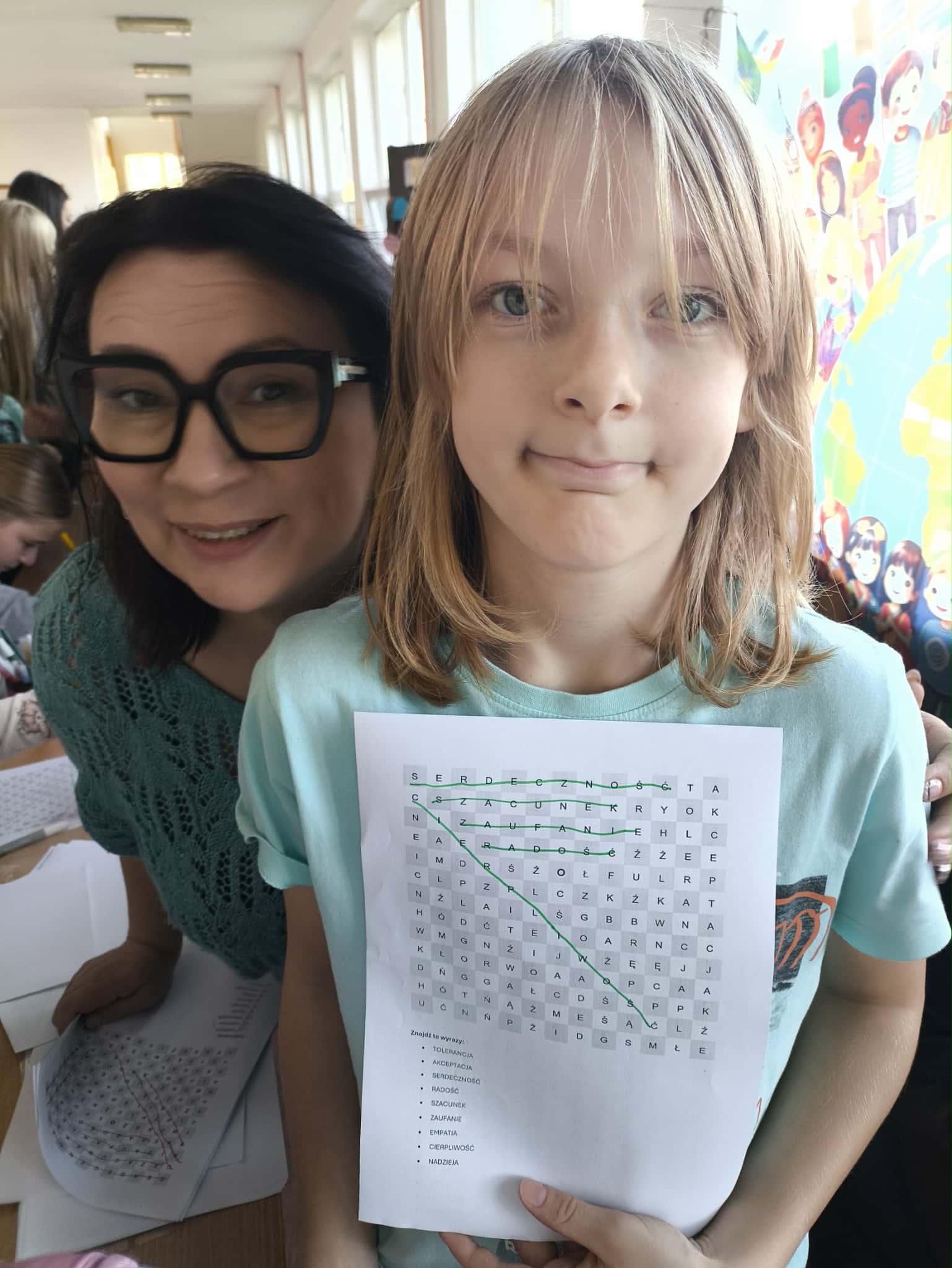 W czasie przerw uczniowie z klas 1-3 oraz kl.4-8 mieli okazję wziąć udział w różnorodnych aktywnościach, które w formie zabawy przybliżały im znaczenie tolerancji. Zajęcia zostały dostosowane do wieku uczestników, a ich forma zachęcała do aktywnego udziału. Dzieci tworzyły Drzewo Tolerancji, na którym umieszczały kolorowe listki ze słowami związanymi z tolerancją , akceptacją i życzliwością, układały puzzle z hasłami promującymi tolerancję oraz brały udział w Tolerancyjnym Kole Fortuny, gdzie czekały na nie zadania wymagające współpracy, refleksji i otwartości. Uczniowie chętnie uczestniczyli w zabawach, a szkolny korytarz tętnił pozytywną energią.