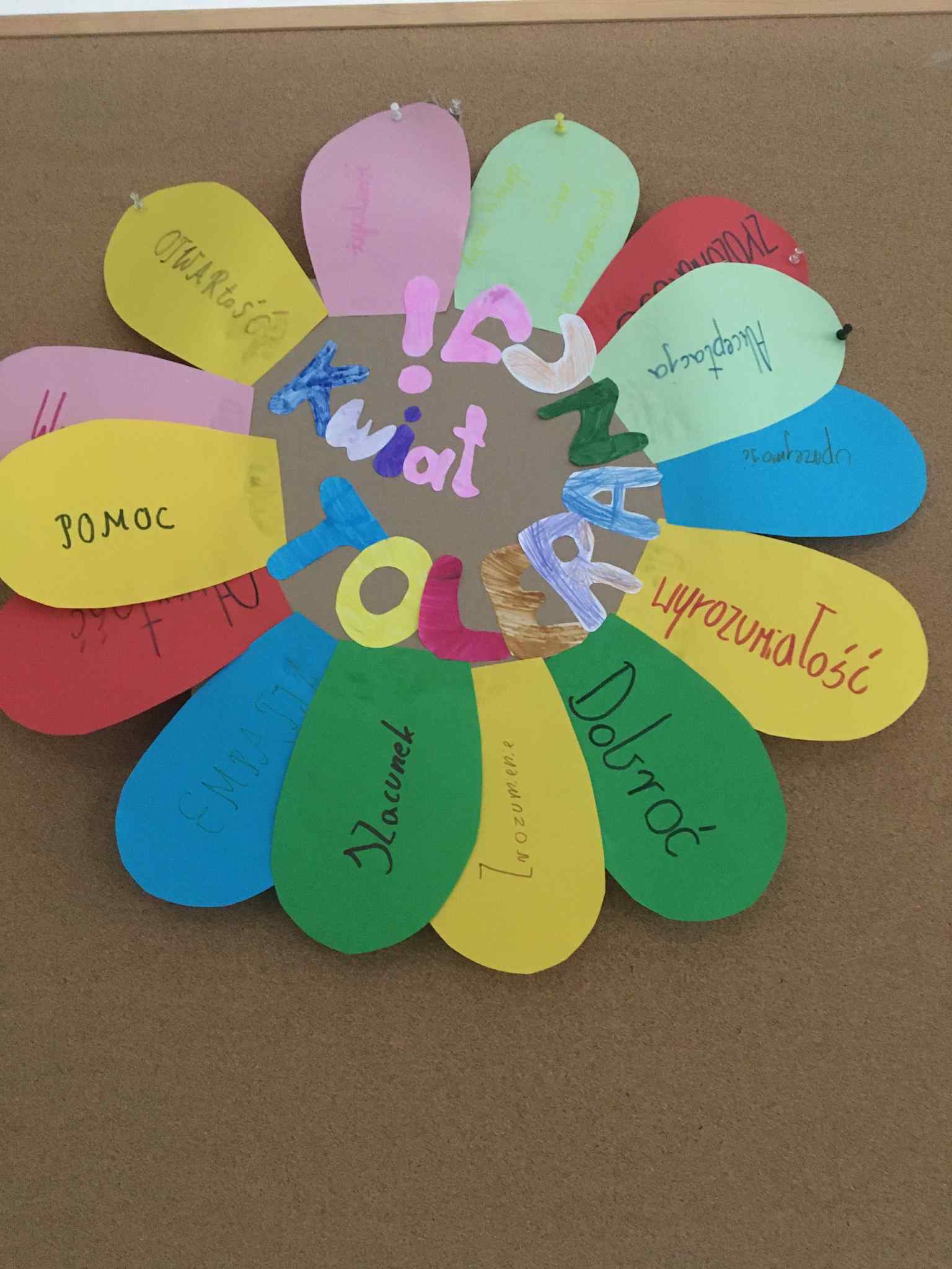 Do obchodów aktywnie włączyły się również wszystkie grupy świetlicowe. Podczas zajęć prowadzono rozmowy z dziećmi na temat tolerancji i jej znaczenia w codziennym życiu. Uczniowie rozwiązywali krzyżówki, tworzyli kolorowe serca, dłonie oraz symboliczny Kwiat Tolerancji. Zadania sprzyjały integracji, rozwijały empatię i uczyły, jak ważne jest bycie życzliwym i otwartym na drugiego człowieka.