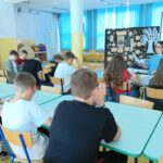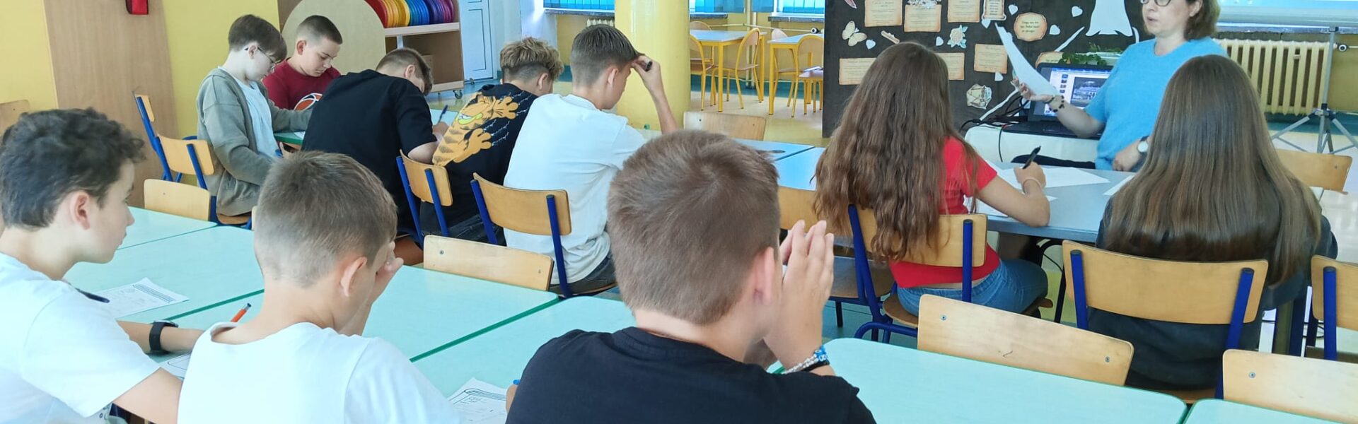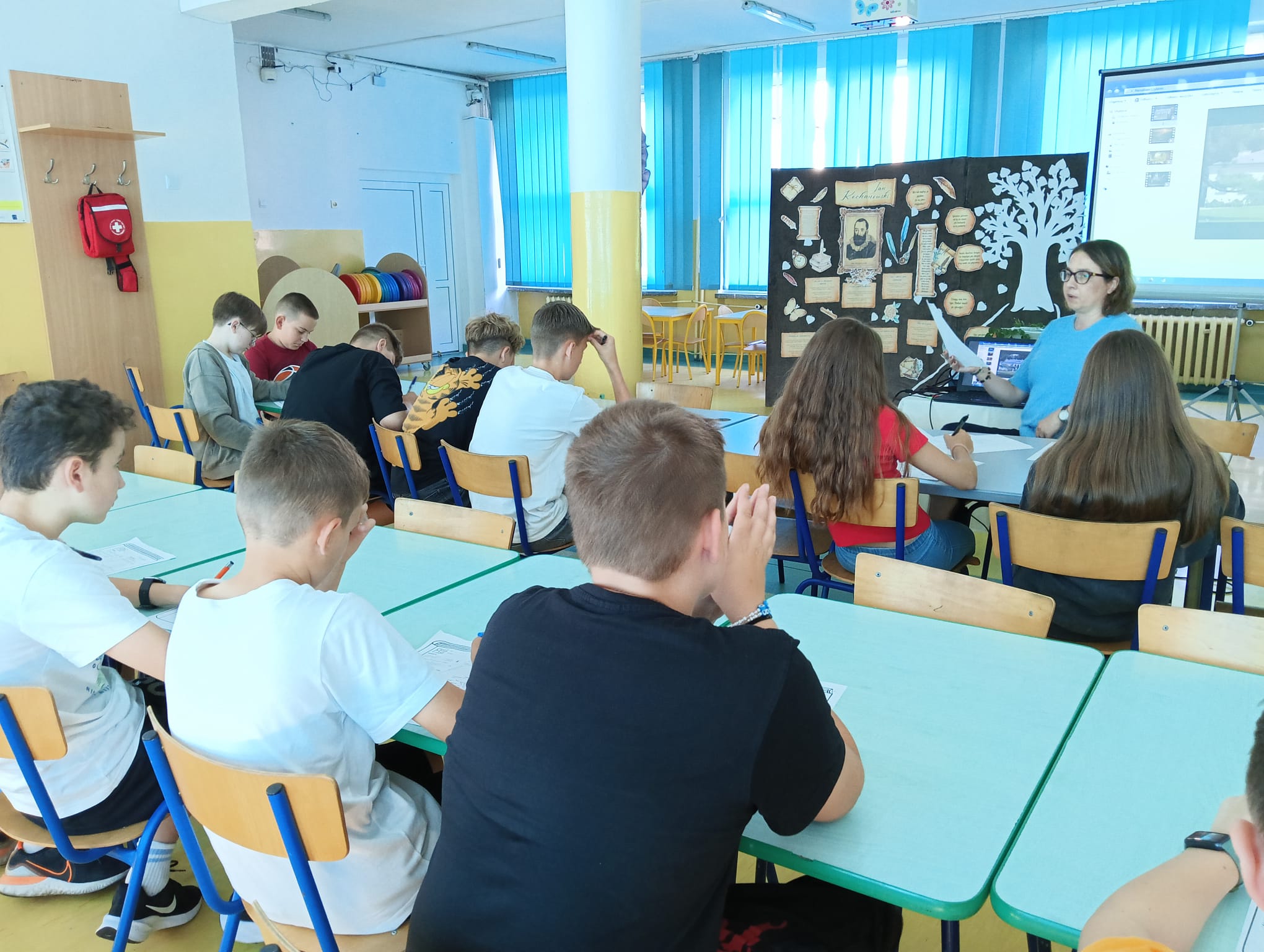 Starsze klasy wzięły udział w bardziej pogłębionej formie spotkania. Podczas wspólnego słuchania utworów uczniowie wypełniali sketchnotki – graficzne notatki, które łączyły informacje o życiu i twórczości Jana Kochanowskiego z osobistymi refleksjami i interpretacjami. Ta forma pracy pozwoliła młodzieży nie tylko utrwalić wiedzę, ale również wyrazić własne spojrzenie na literaturę w sposób kreatywny i nowoczesny.