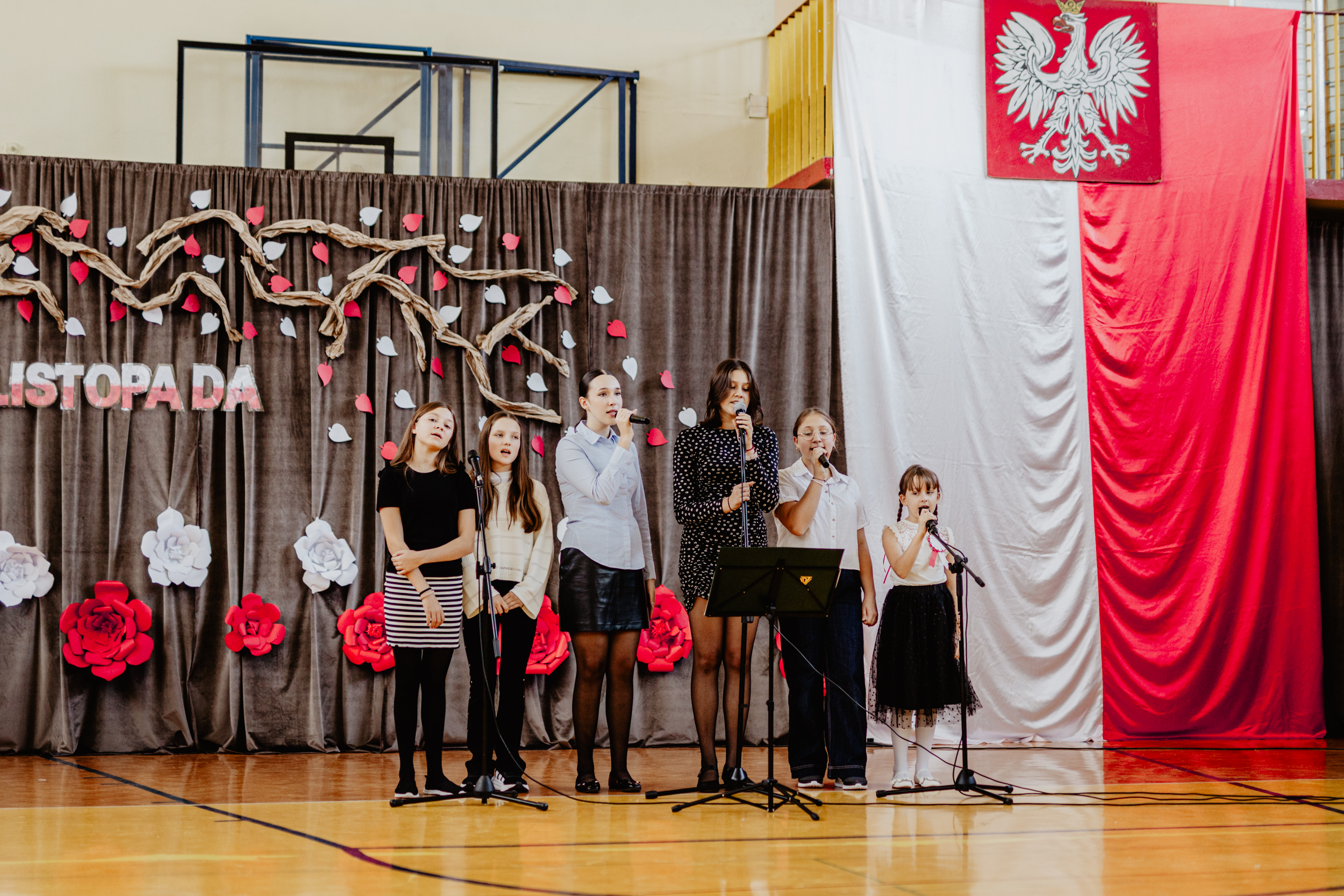Siódmy listopada był w naszej szkole dniem szczególnym, ponieważ odbyła się uroczysta akademia poświęcona upamiętnieniu jednego z najważniejszych wydarzeń w historii Polski – odzyskania Niepodległości w 1918 roku. Podczas akademii odśpiewaliśmy cztery zwrotki hymnu narodowego, w związku z przystąpieniem do akcji „SZKOŁA DO HYMNU”.