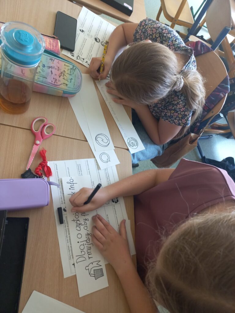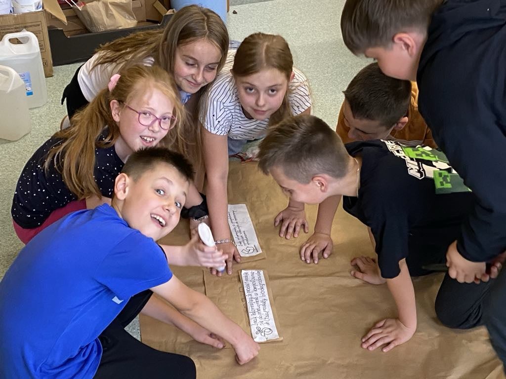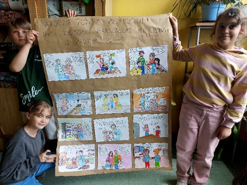 Uczniowie podjęli wiele ekscytujących wyzwań, takich jak tworzenie komiksu o ekologicznych zakupach, pisania wierszy o segregacji odpadów, nadawania odpadom drugiego życia poprzez tworzenie nowych przedmiotów czy komponowania piosenki o życiu butelki.