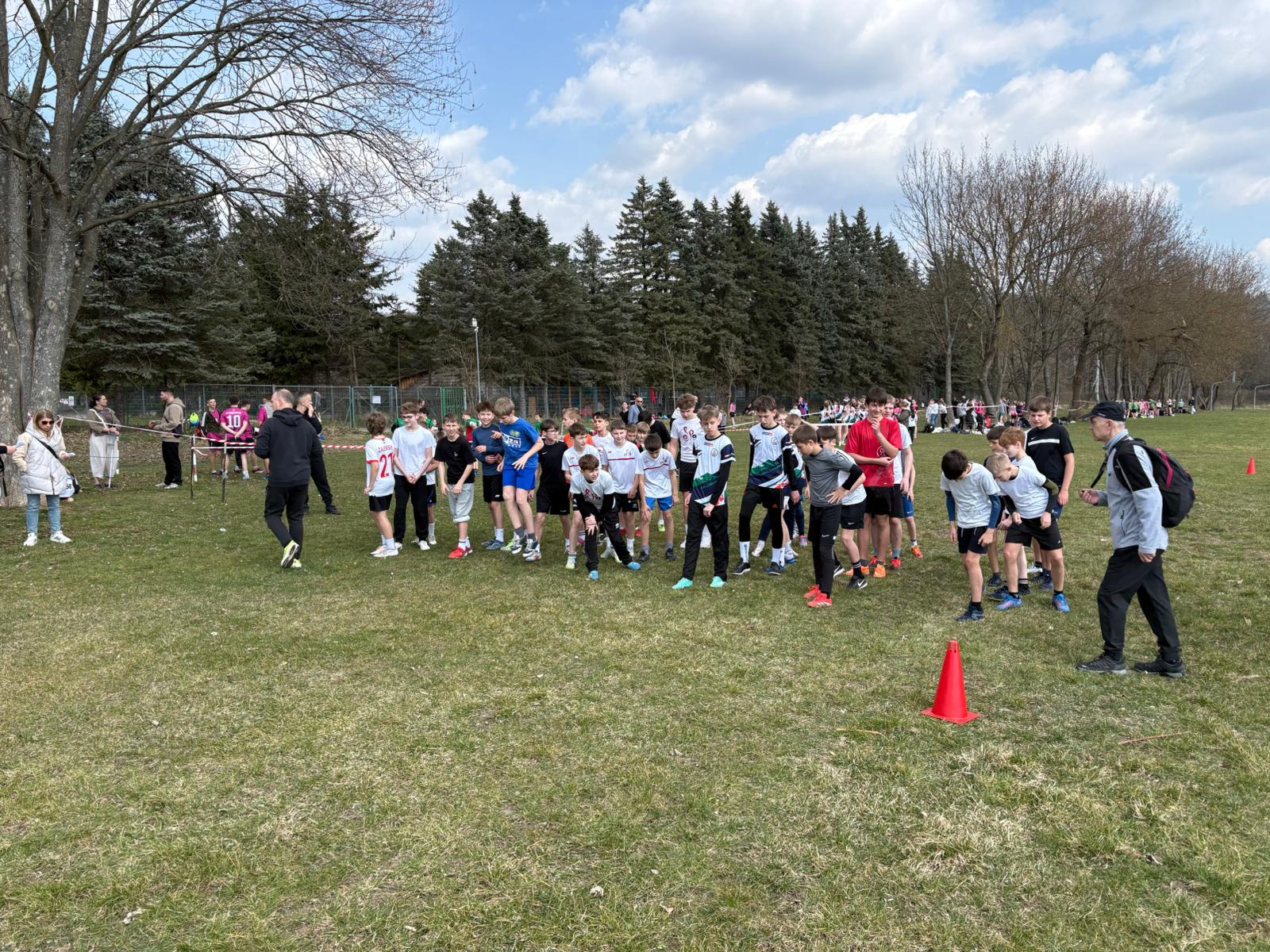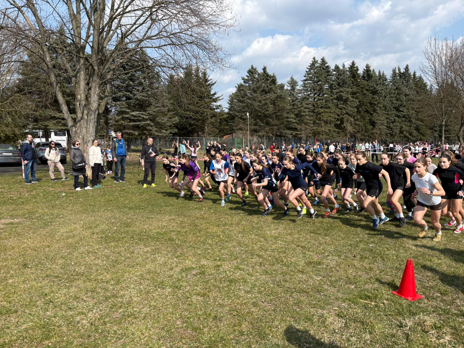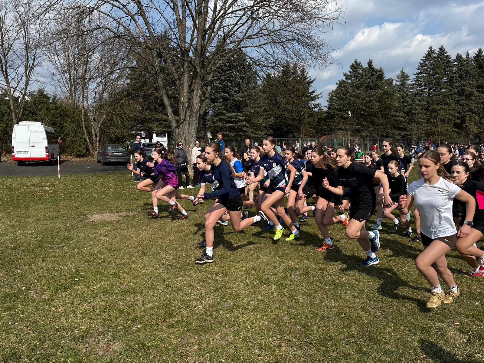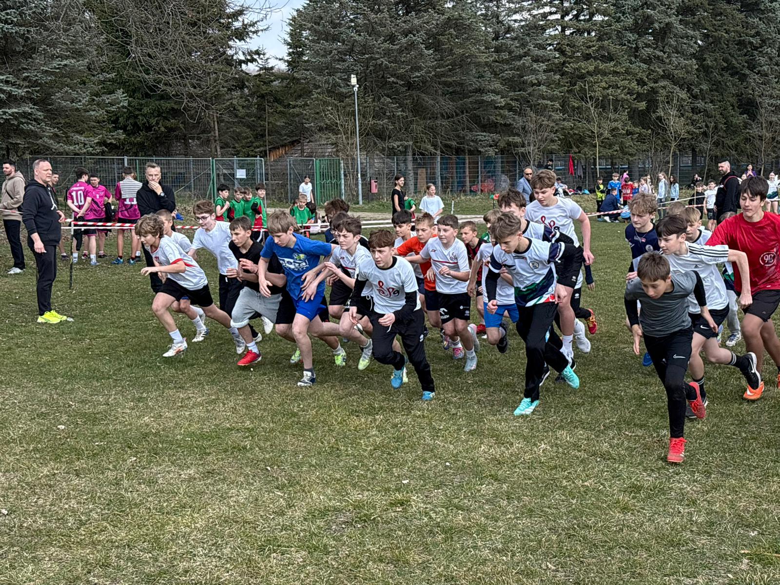Dokładnie tak było i tym razem. Na pierwszy ogień ruszyły nasze dziewczęta, które spisały się doskonale, zarówno jako drużyna, jak i indywidualnie. Wiktoria Pióro linię mety przekroczyła jako pierwsza spośród wszystkich uczestniczek, zaraz za nią na czwartej pozycji Milena Markuc, tuż za pierwszą dziesiątką do słynnego lejka wbiegła debiutantka zawodów przełajowych Inga Klimkowska, kilka miejsc dalej Milena Masłowiec, Amelia Bryt- Fil i Sonia Poznar. Drużynowo dziewczęta zajęły 1. miejsce, zostawiając daleko w tyle swoje rywalki (z prawie trzydziestopunktową przewagą), co w tego typu zawodach jest sporym wyczynem.