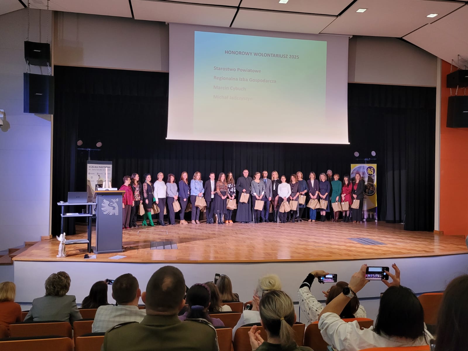 Na szczególne wyróżnienie zasługuje również pan Marcin Cybuch, nauczyciel naszej szkoły, który od wielu lat związany jest z Caritas i regularnie angażuje się w działania na rzecz potrzebujących. Podczas tegorocznej Gali Wolontariatu otrzymał on wyjątkowe wyróżnienie – tytuł Honorowego Wolontariusza. To wyraz uznania dla jego wieloletniej, pełnej pasji i poświęcenia działalności społecznej oraz inspiracja dla całej naszej szkolnej społeczności.
