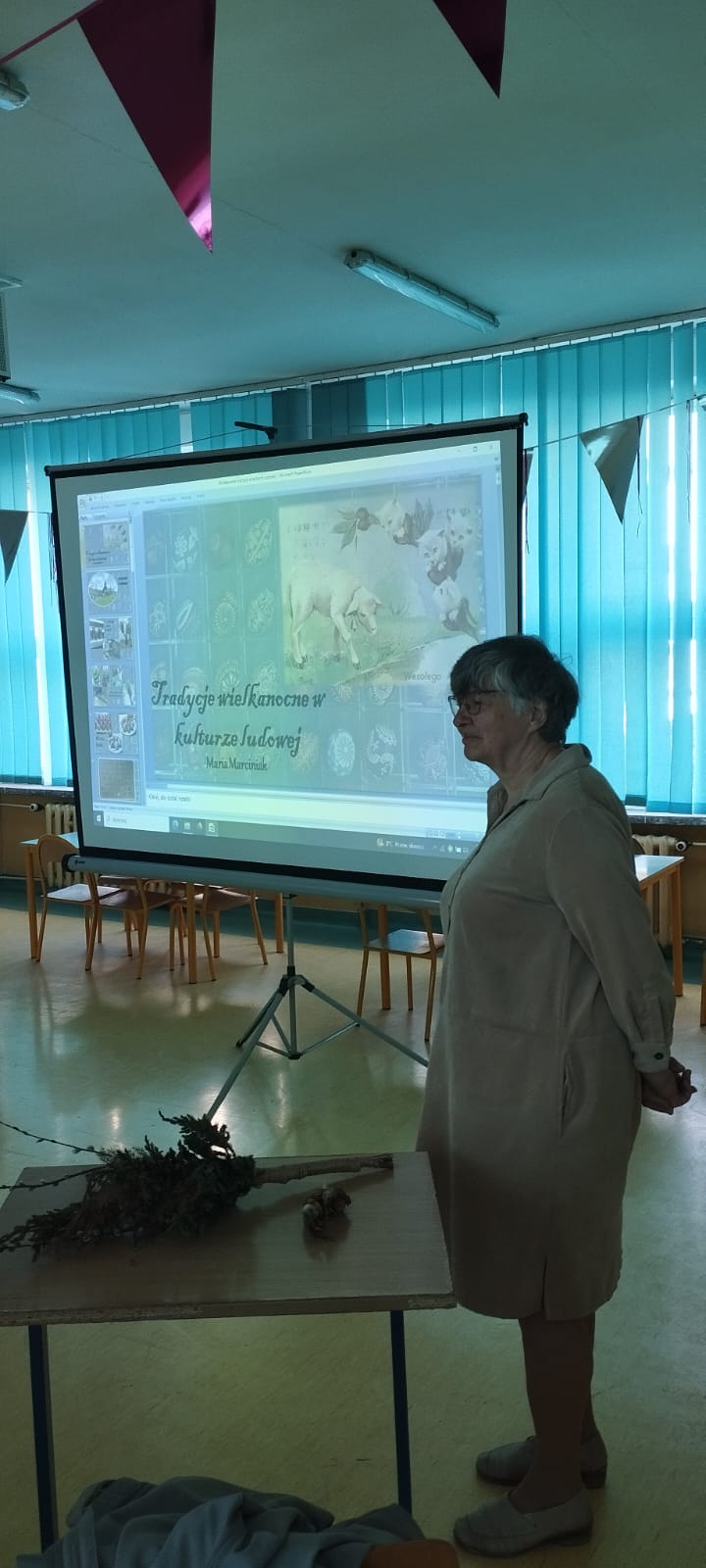W naszej szkole odbyły się wyjątkowe warsztaty wielkanocne, które poprowadziła pani dr Maria Marciniak – doktor habilitowana nauk społecznych, wykładowczyni na Wydziale Nauk Politycznych i Studiów Międzynarodowych Uniwersytetu Warszawskiego, specjalistka w dziedzinie tradycji i kultury ludowej, z pasją dzieląca się swoją wiedzą z najmłodszymi.