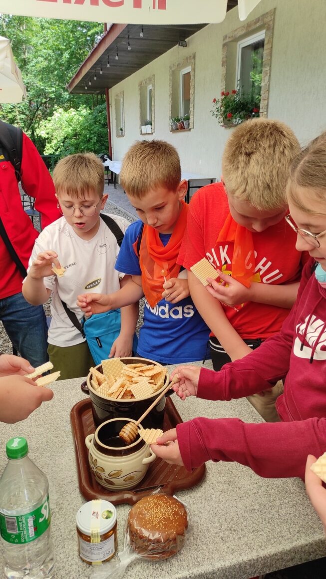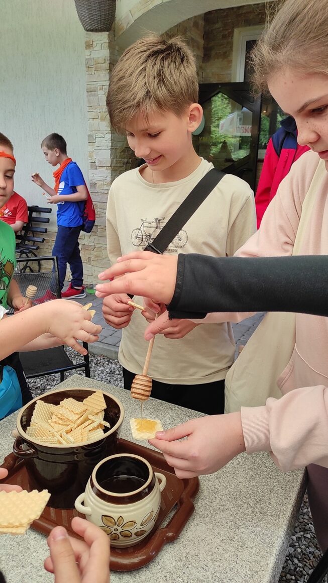 Zwiedziliśmy pasiekę Barć w Kamiennej, galerię świętego Ambrożego, skosztowaliśmy pysznego miodu, wjechaliśmy kolejką na Górę Parkową w Krynicy-Zdroju, gdzie mnóstwo frajdy sprawiły nam ,,Rajskie Ślizgawki”. Napiliśmy się zdrowej wody w Pijalni Wód i odwiedziliśmy najciekawsze miejsca w uzdrowisku. Ten wspólny wyjazd na długo  pozostanie nam w pamięci.